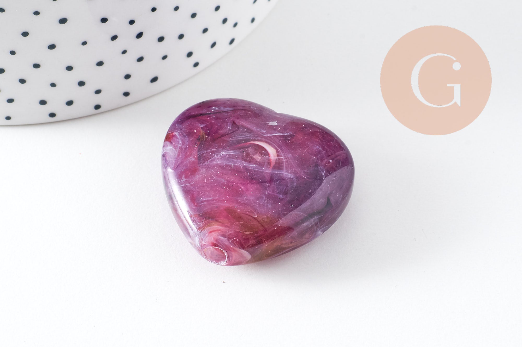 Añade un diseño atrevido y romántico a tus creaciones de bricolaje con esta cuenta de corazón de piedra de imitación acrílica XXL . Su gran tamaño y su efecto marmolado imitando piedra natural lo convierten en una opción perfecta para joyas que destaquen y capten la atención.