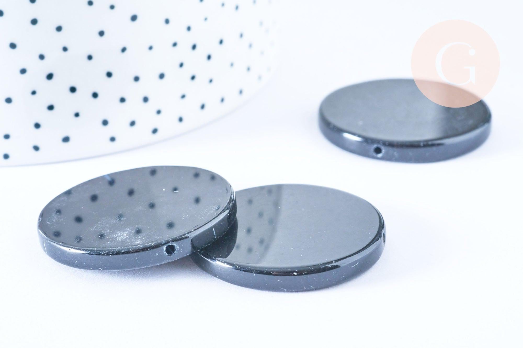 Perle disque agate noire 40mm,perle pierre, x1 (G6456)