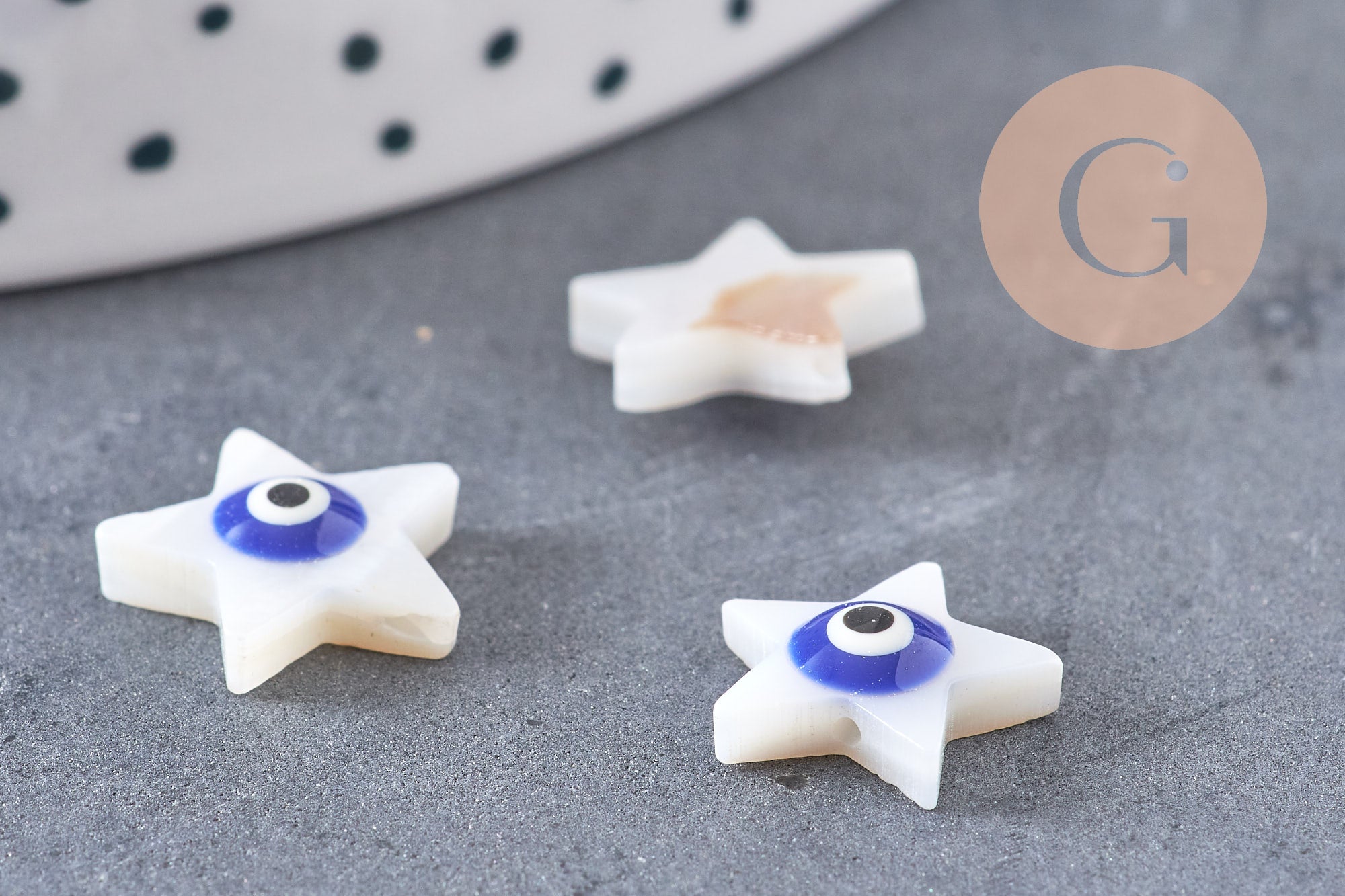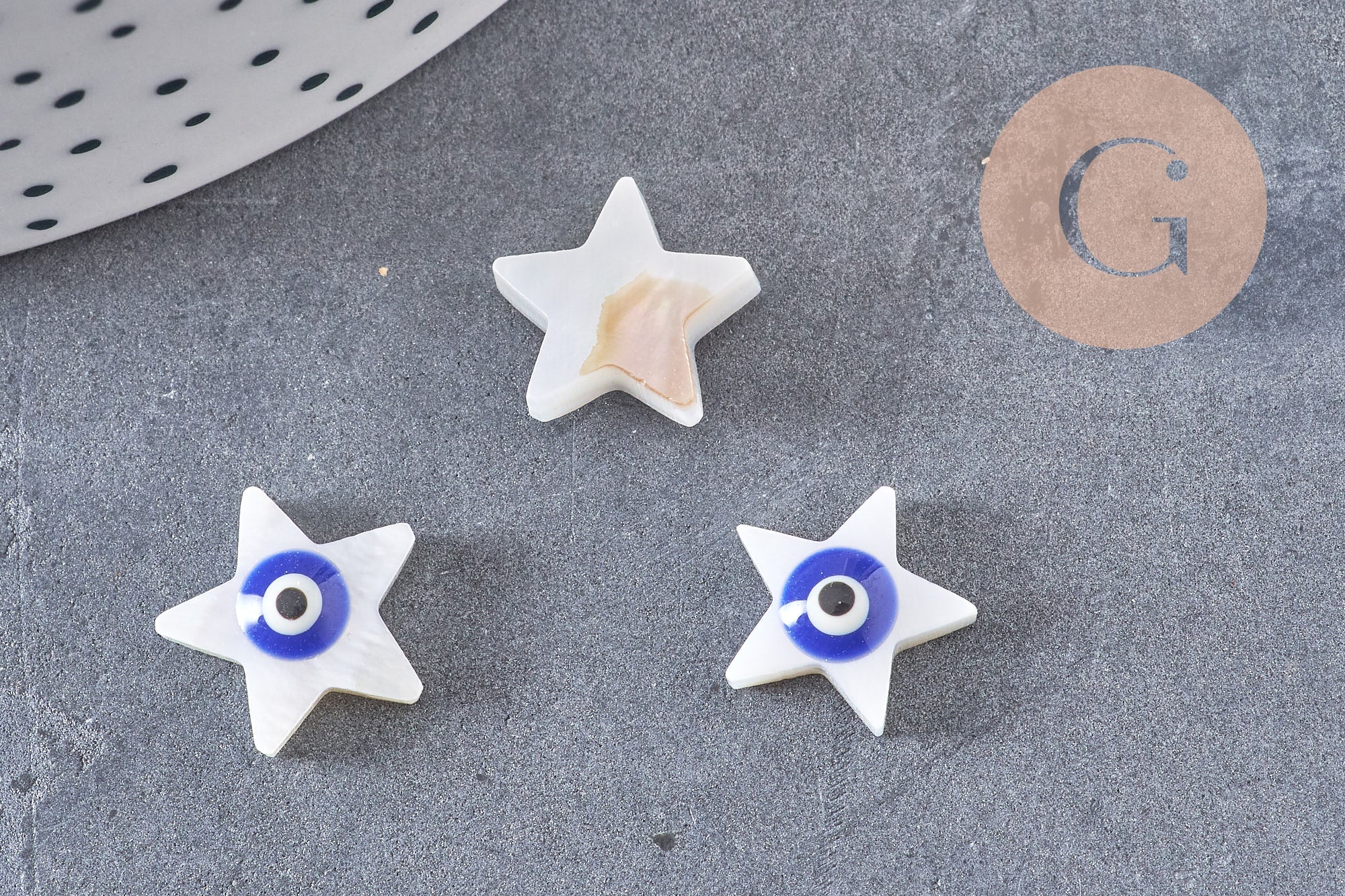 Déjese seducir por este juego de 10 cuentas estrella de nácar blanco que representan el ojo de la suerte. Para personalizar sus joyas y otros accesorios textiles o de piel suave,