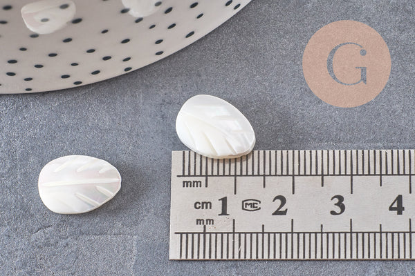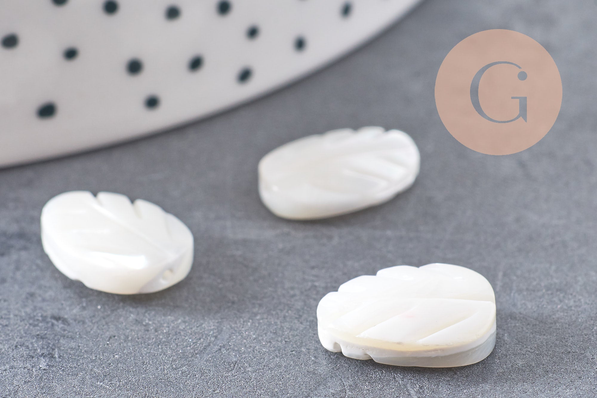 Déjate seducir por estas cuentas de nácar natural con forma de hoja . Están perforadas de arriba abajo.