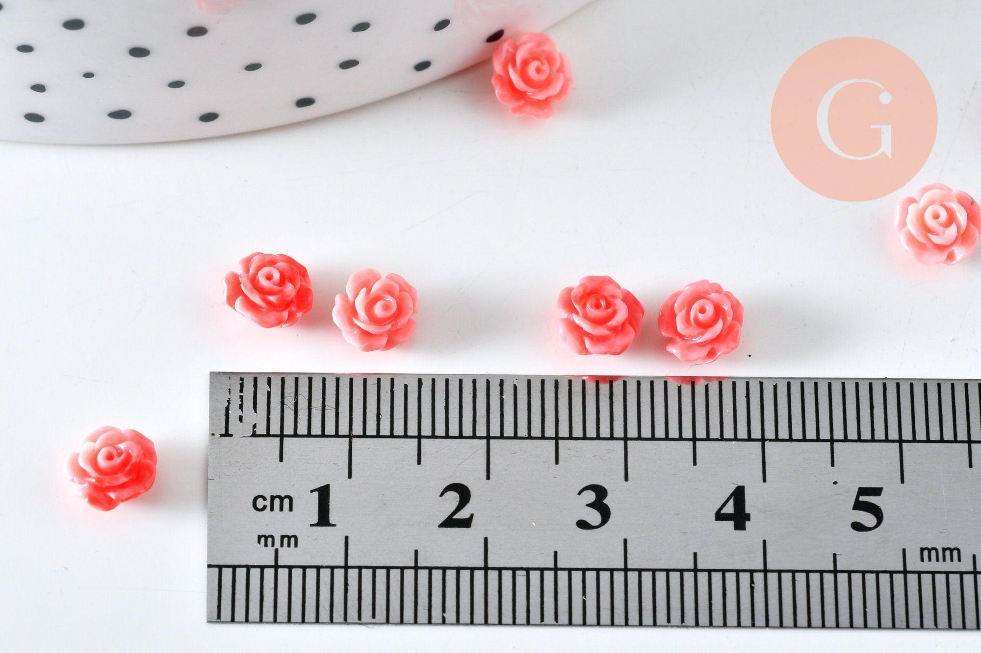 Perla de resina rosa con forma de flor de rosa de 6,5 x 4,5 mm, flor dorada, joyería romántica, x10 (G6332)