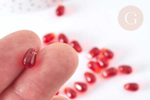 Un conjunto de bonitas cuentas colgantes de vidrio de color rojo oscuro .