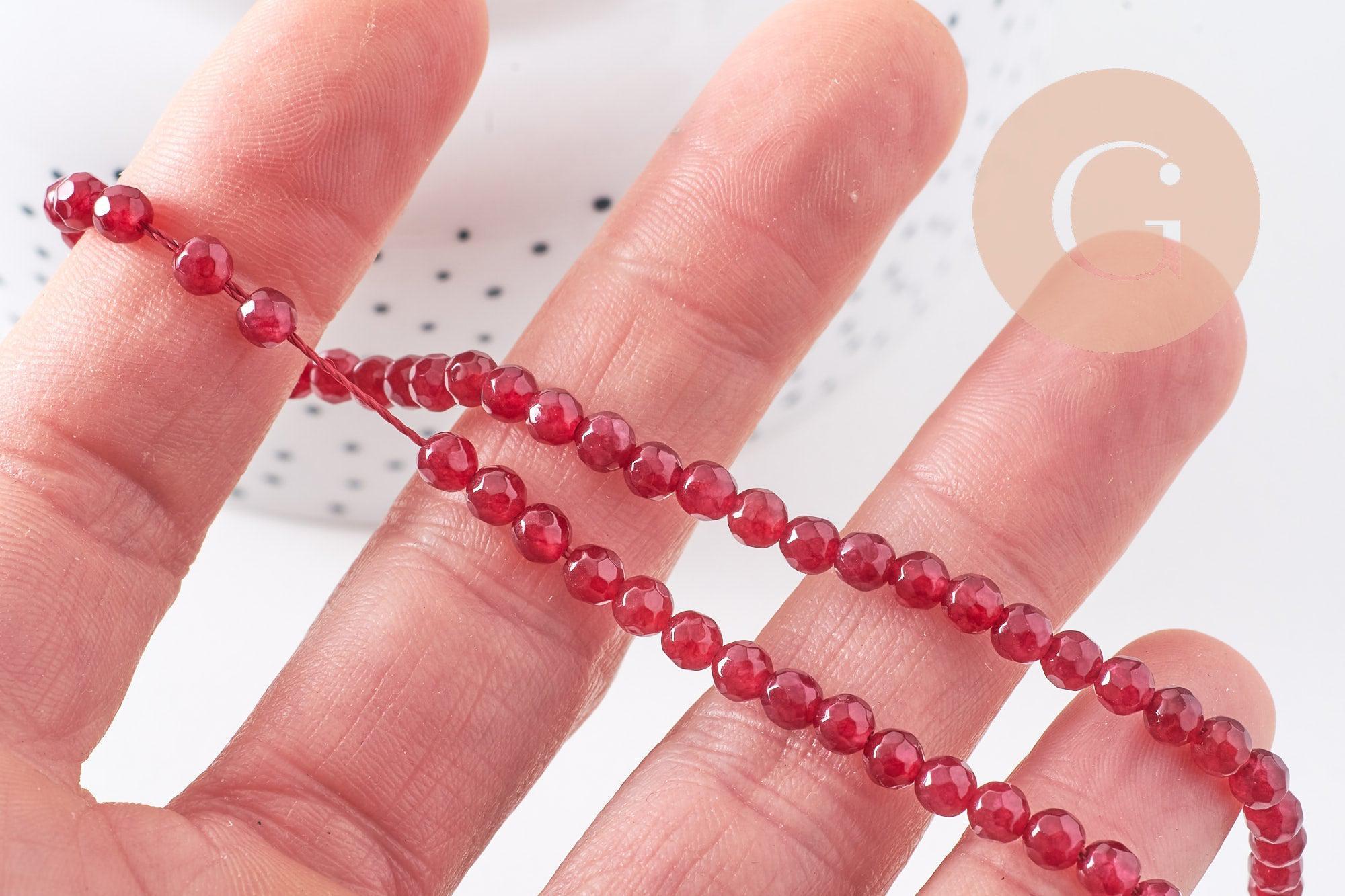 Cuentas de jade rojo burdeos, jade rojo oscuro, suministros creativos, cuentas de jade, piedra natural, jade natural, cuentas de piedra, cuentas facetadas, jade, 4 mm