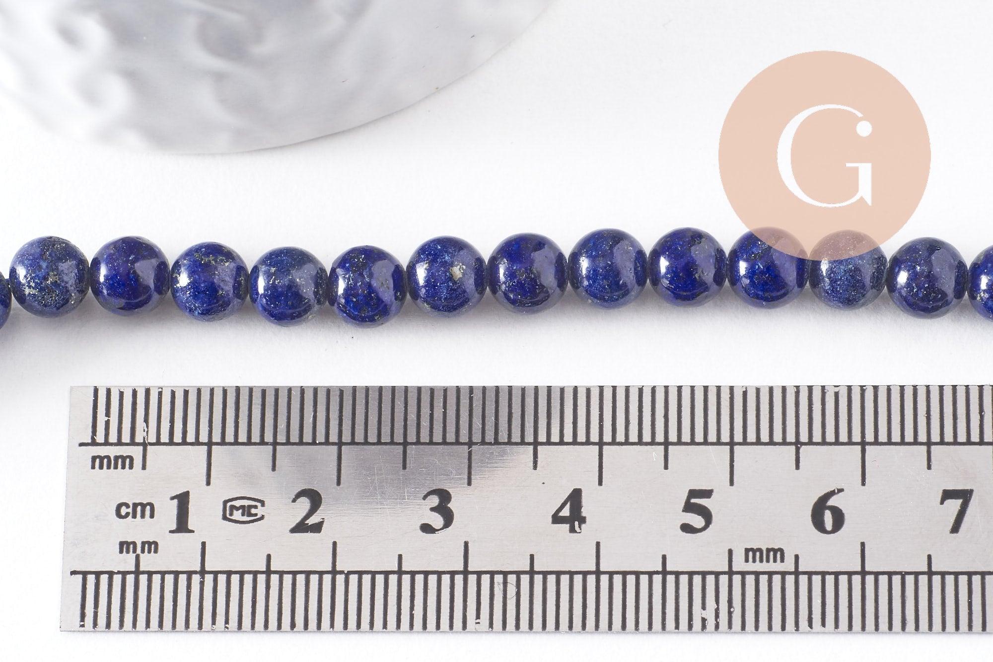 Perla redonda de lapislázuli, lapislázuli azul, piedra natural, creación de joyas con piedra natural, lapislázuli natural, 6 mm, hilo de 20 cm