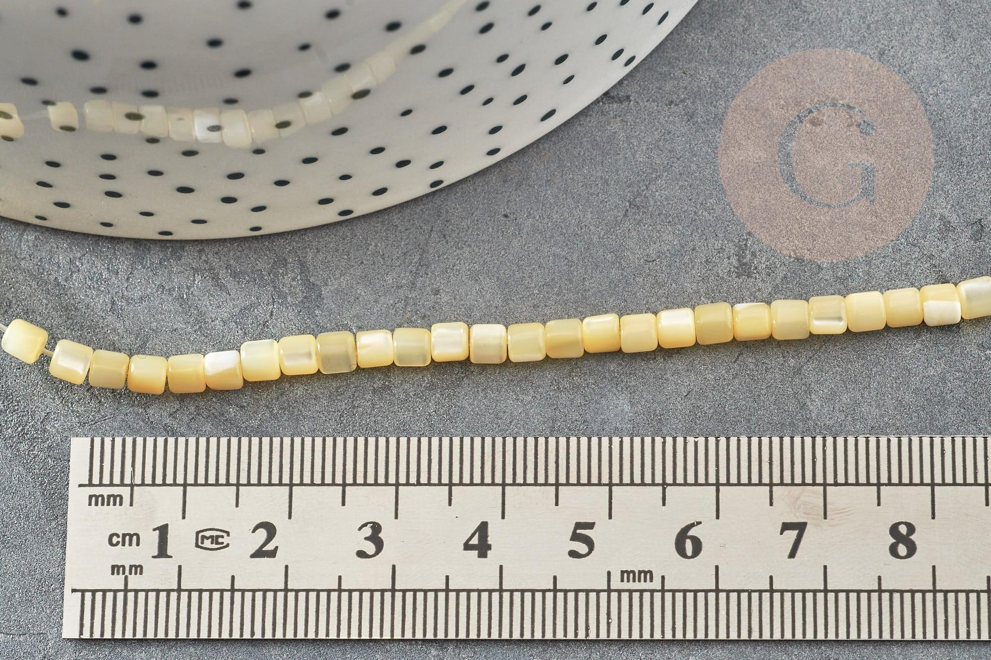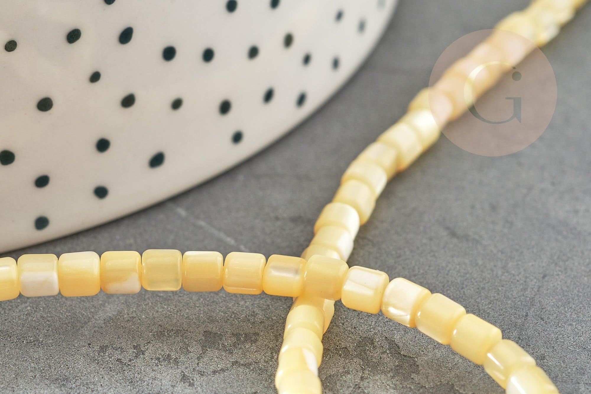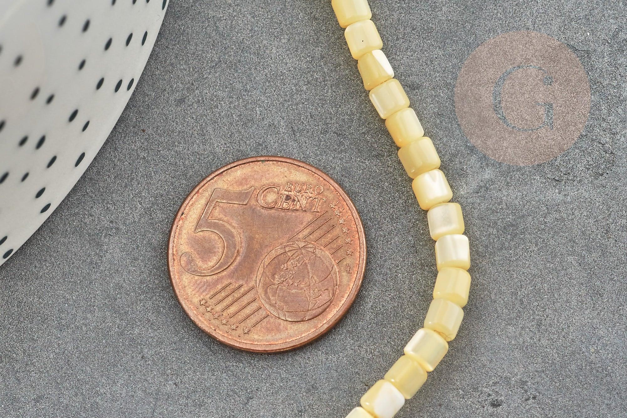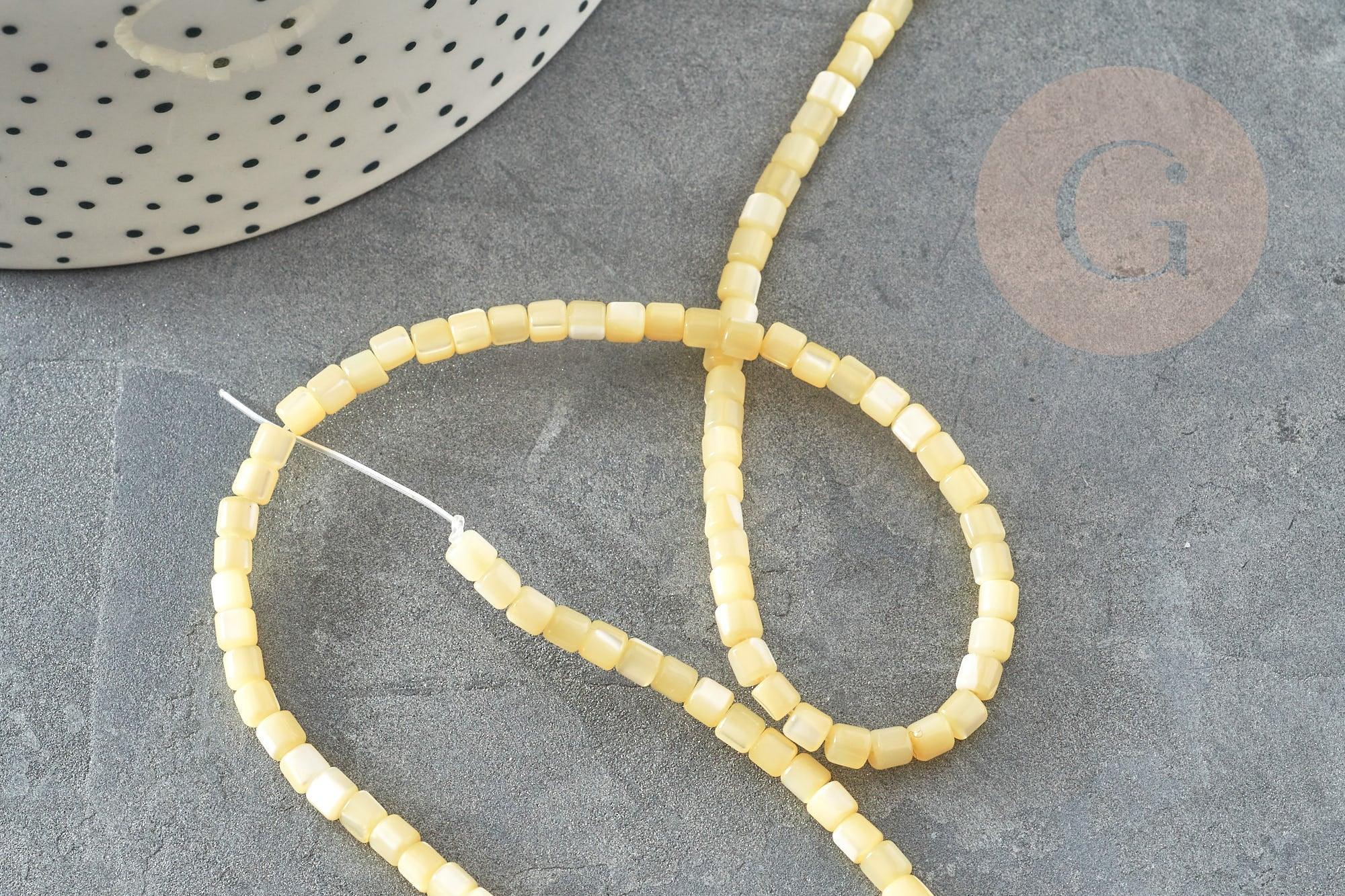 Perla de nácar heishi de color amarillo pastel natural, perla de concha, 4 x 4 mm, tira de 20 cm, x1 (G9241)