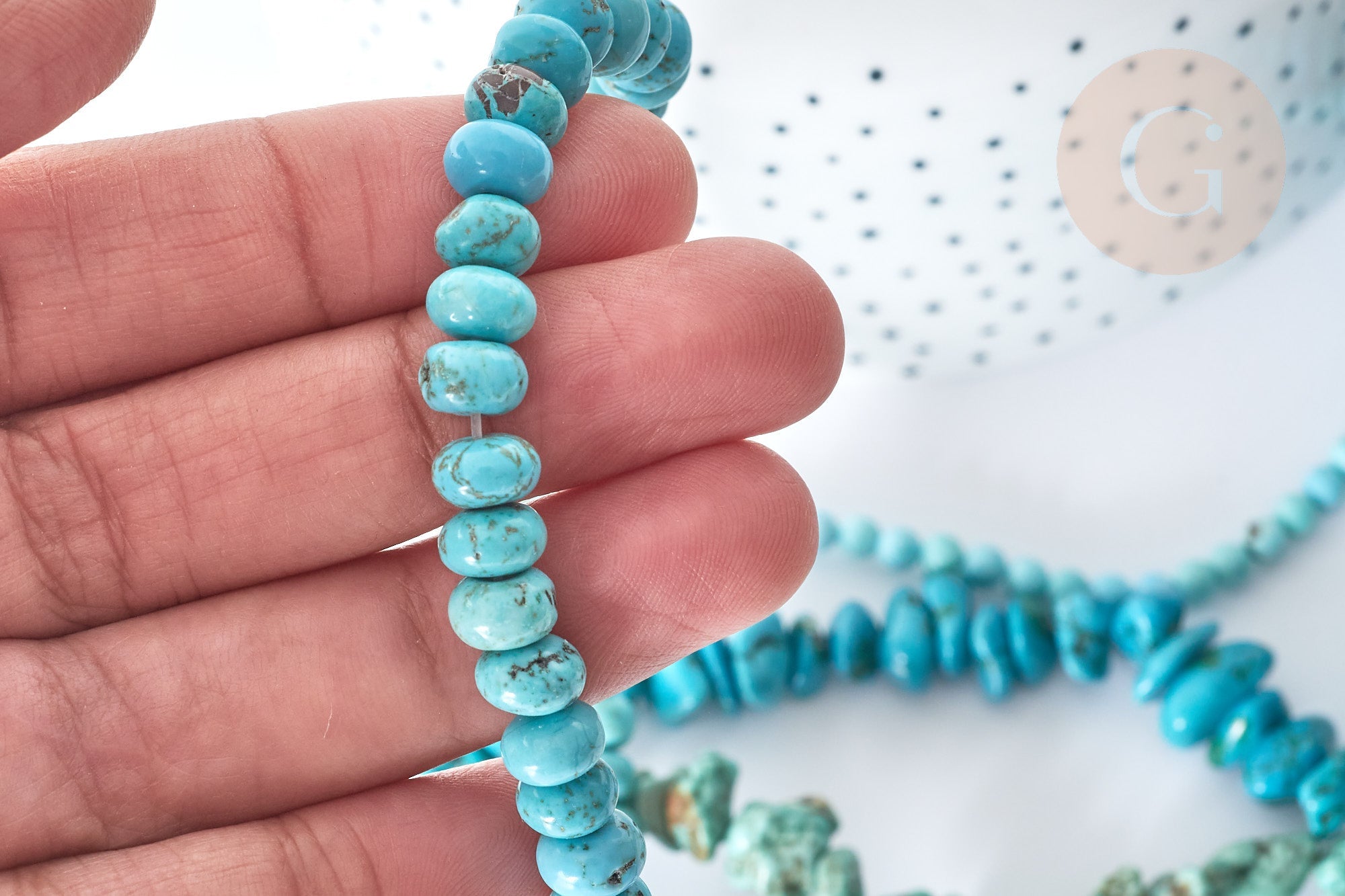 Otras cuentas de howlita natural están disponibles en la tienda Gingerlily .