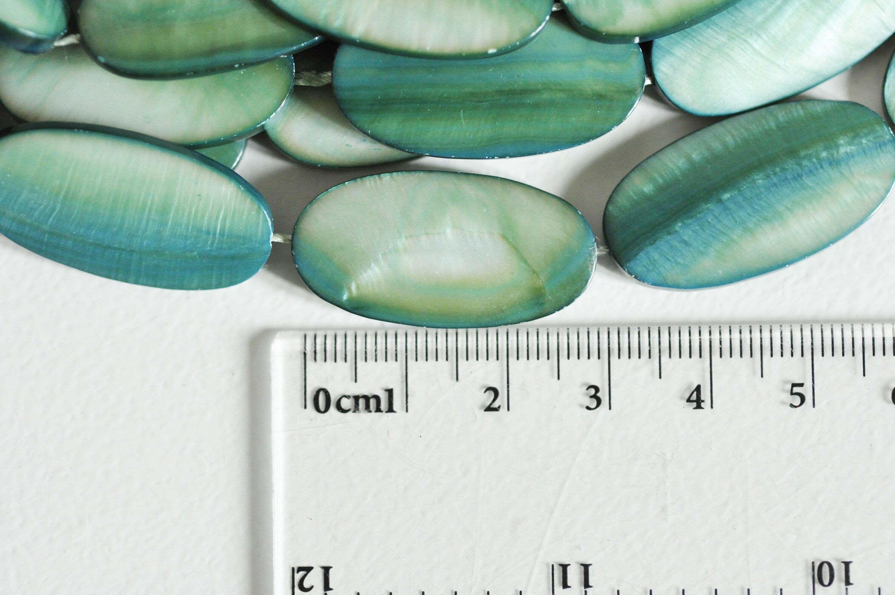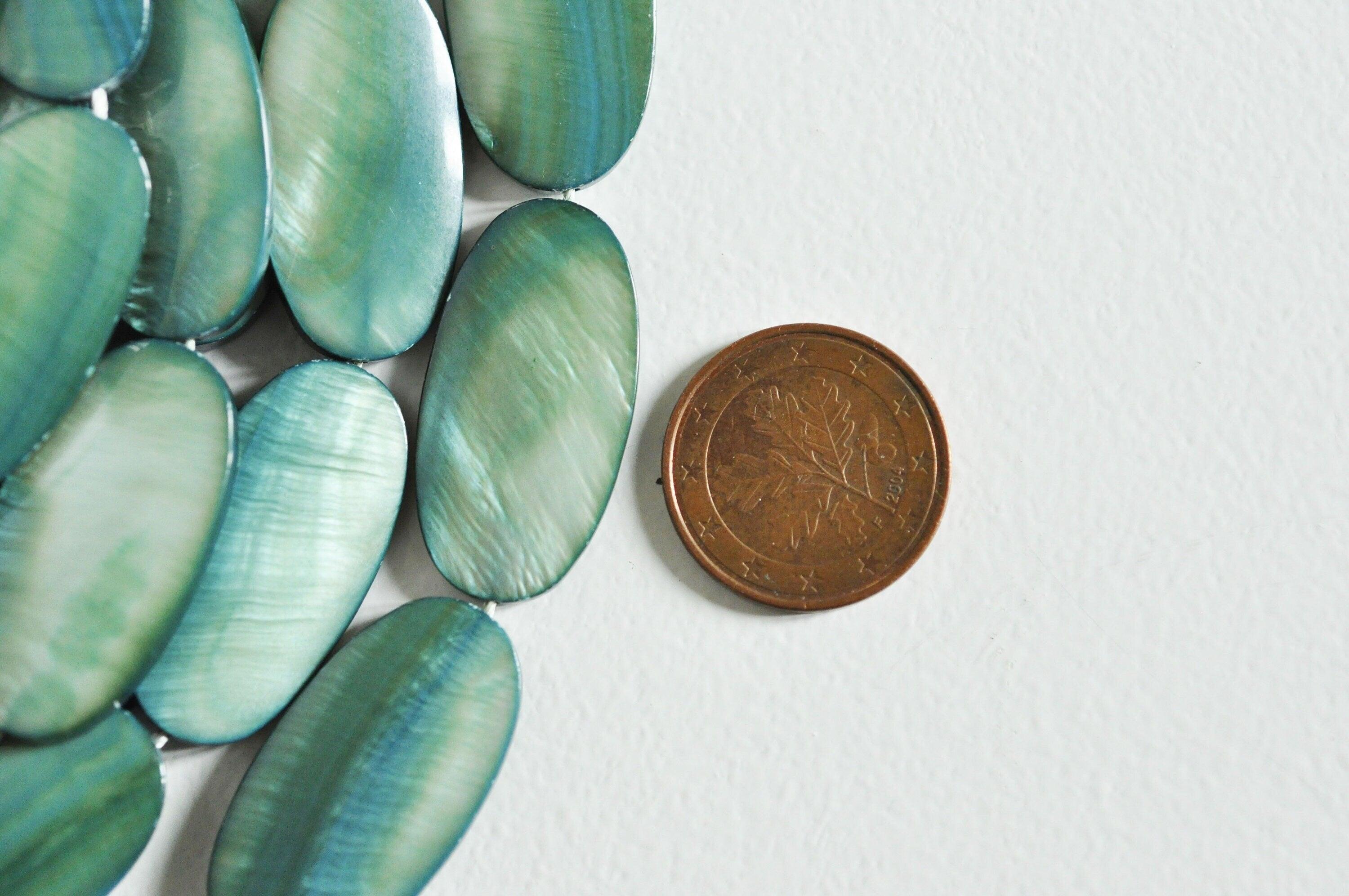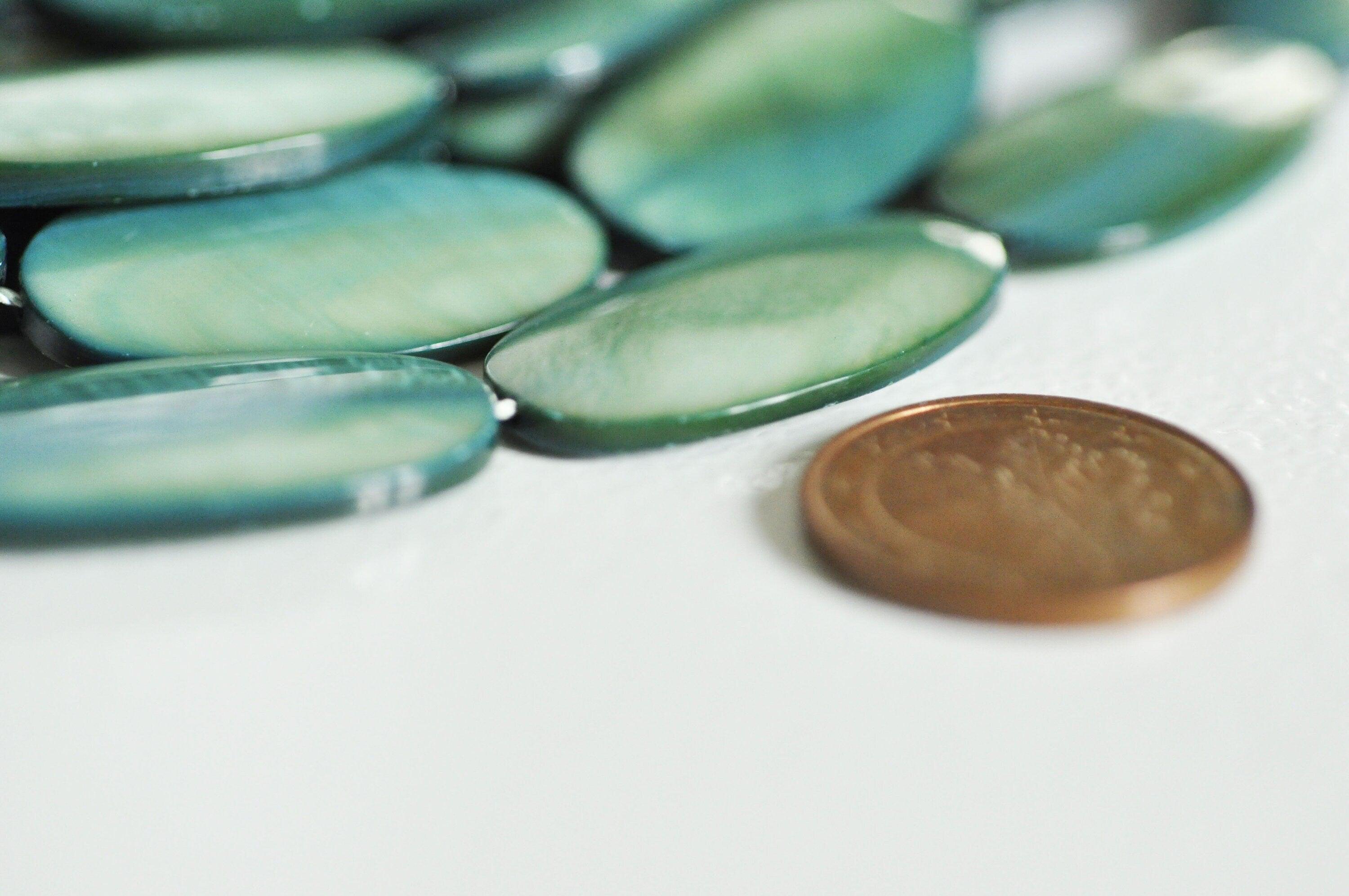 EP Cuenta ovalada de nácar verde natural, cuenta rectangular, concha teñida de verde, 30 mm, hilo de 13-G1061