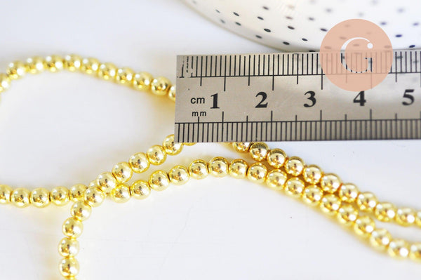 Perla redonda de hematita dorada de 4 mm, perla de piedra de hematita sintética, tira de 39 cm, x1 (G6272)