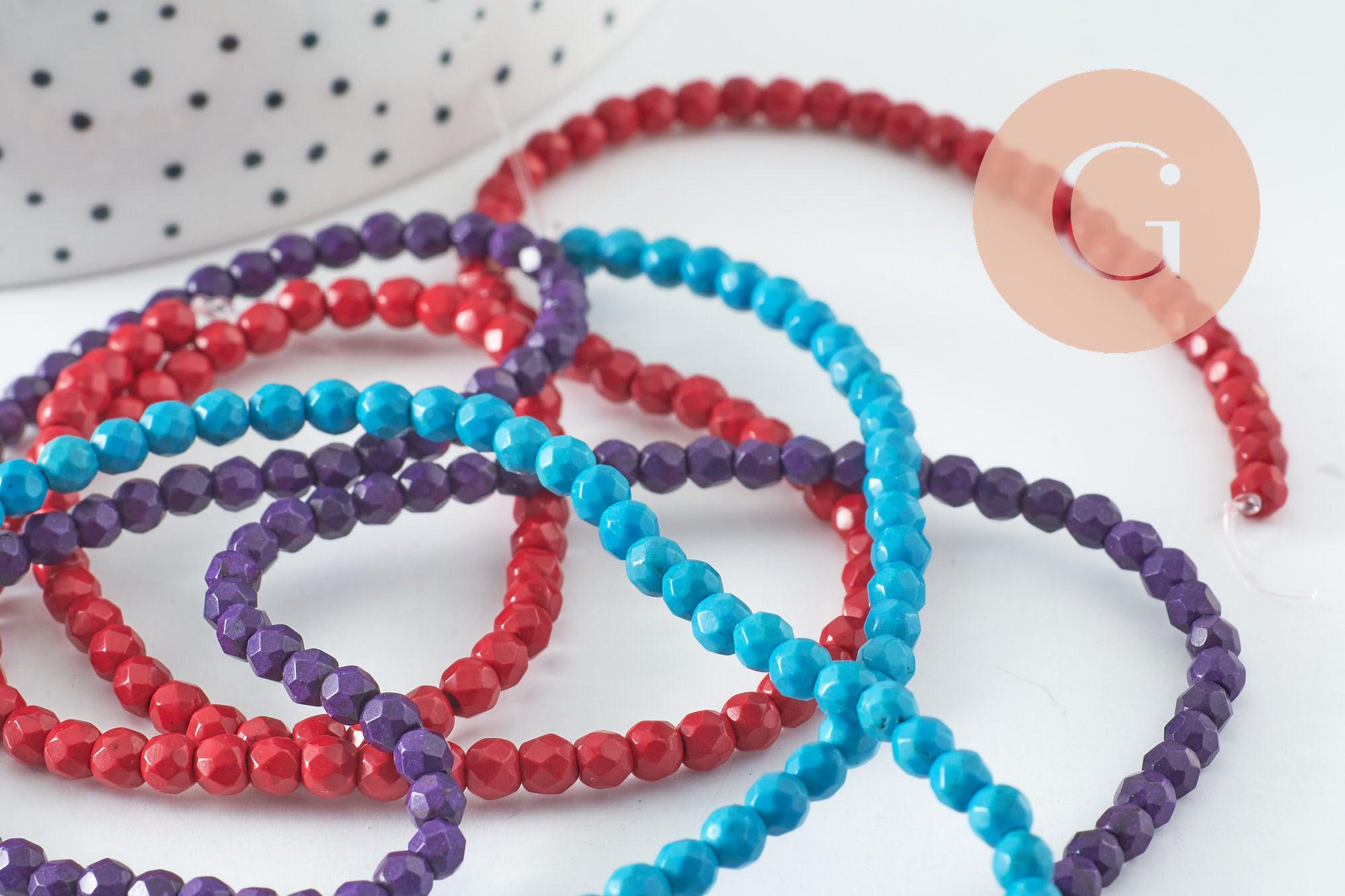 Cuenta de howlita redonda facetada, piedra natural, howlita natural, piedra, 4 mm, tira de 90 cuentas, X1 (G4668)