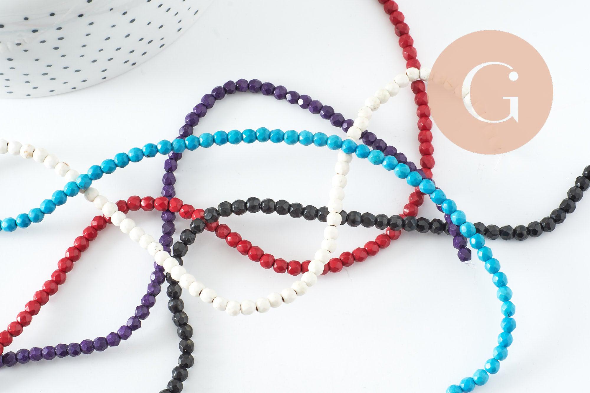 Cuentas de howlita redondas facetadas, suministro creativo, cuentas de howlita, piedra natural, howlita natural, cuentas de piedra, 4 mm, tira de 90 cuentas
