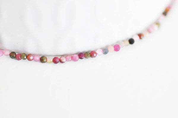 Añade un toque de magia mineral a tus creaciones con estas sublimes cuentas redondas facetadas de turmalina natural . Cada cuenta revela un tono único, que va del verde suave al rosa intenso, incluyendo tonos marrones y negros: un arcoíris natural para tus joyas DIY.