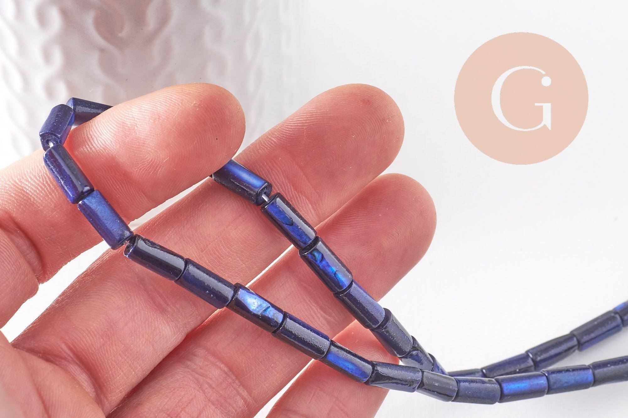 Estas bonitas cuentas tubulares de nácar teñidas de azul te permitirán crear muchas bisutería DIY . Brillantes y naturales, serán ideales para crear tus pulseras y collares.