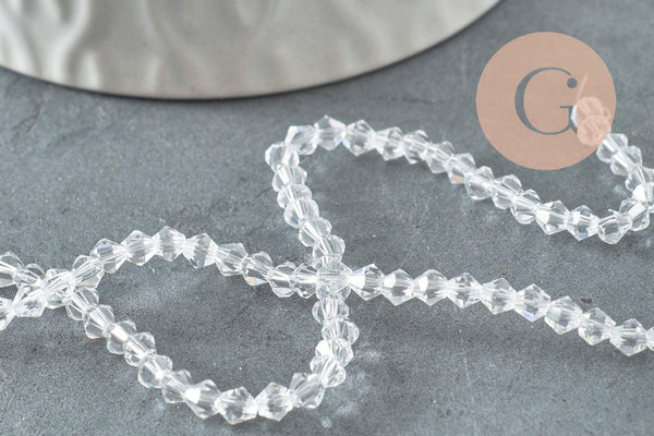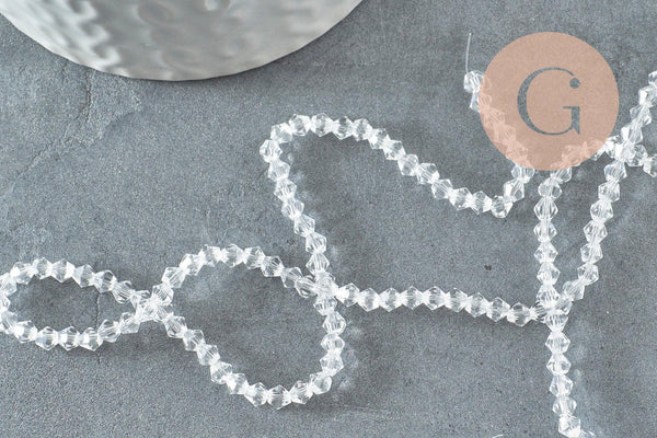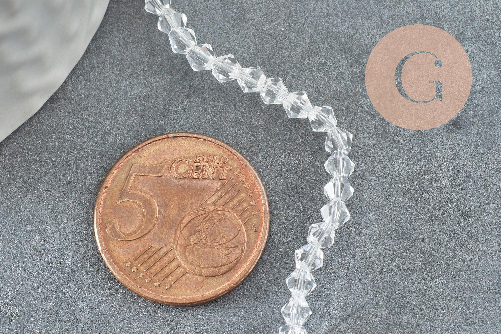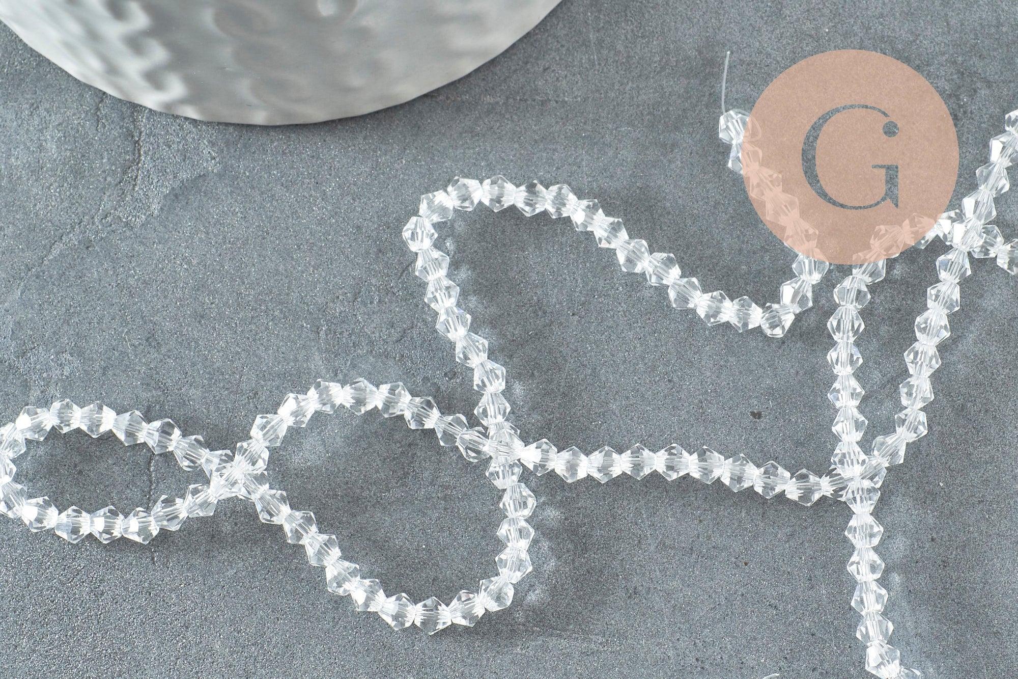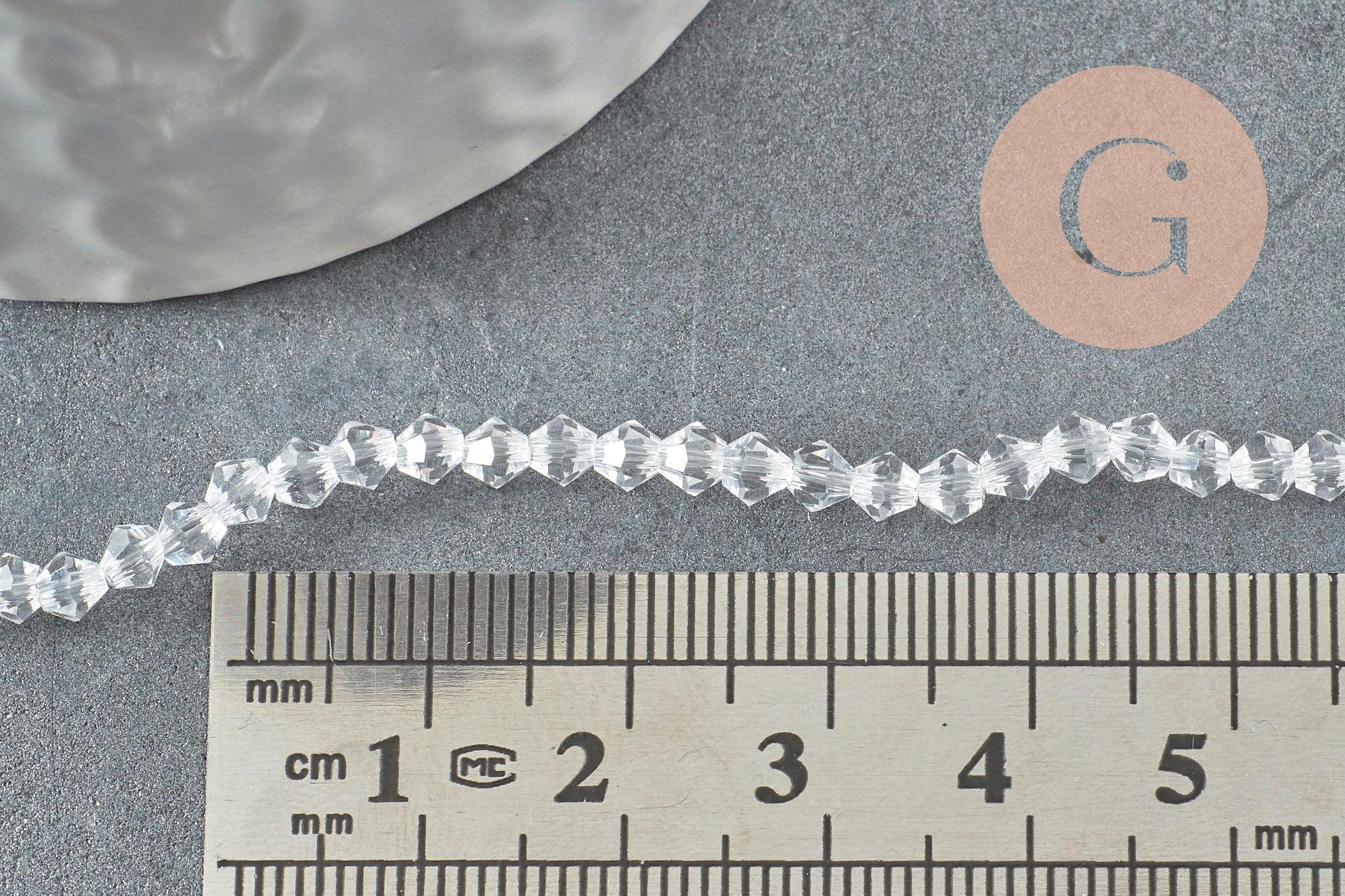 Cuentas de cristal transparente facetado en forma de peonza, cuentas de joyería, cuentas de cristal bicono facetado transparente, 3 mm, hilo de 45 cm, x1 (G1632)