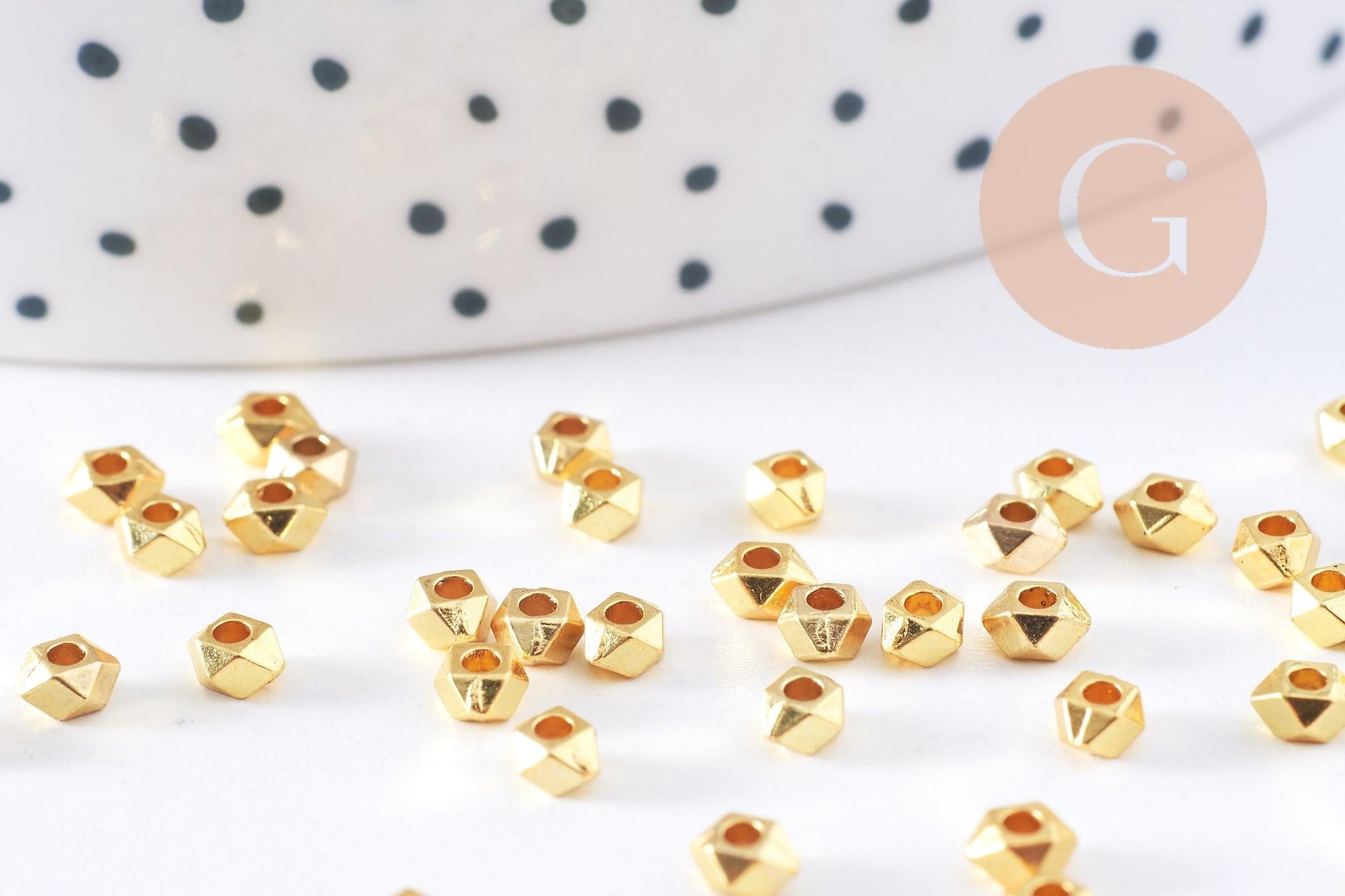 Estas cuentas espaciadoras de oro facetadas hexagonales son perfectas para dar forma a tus joyas con elegancia y sutileza.