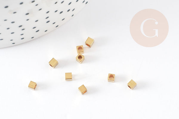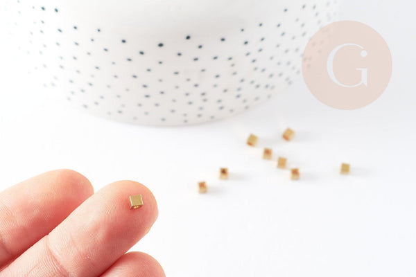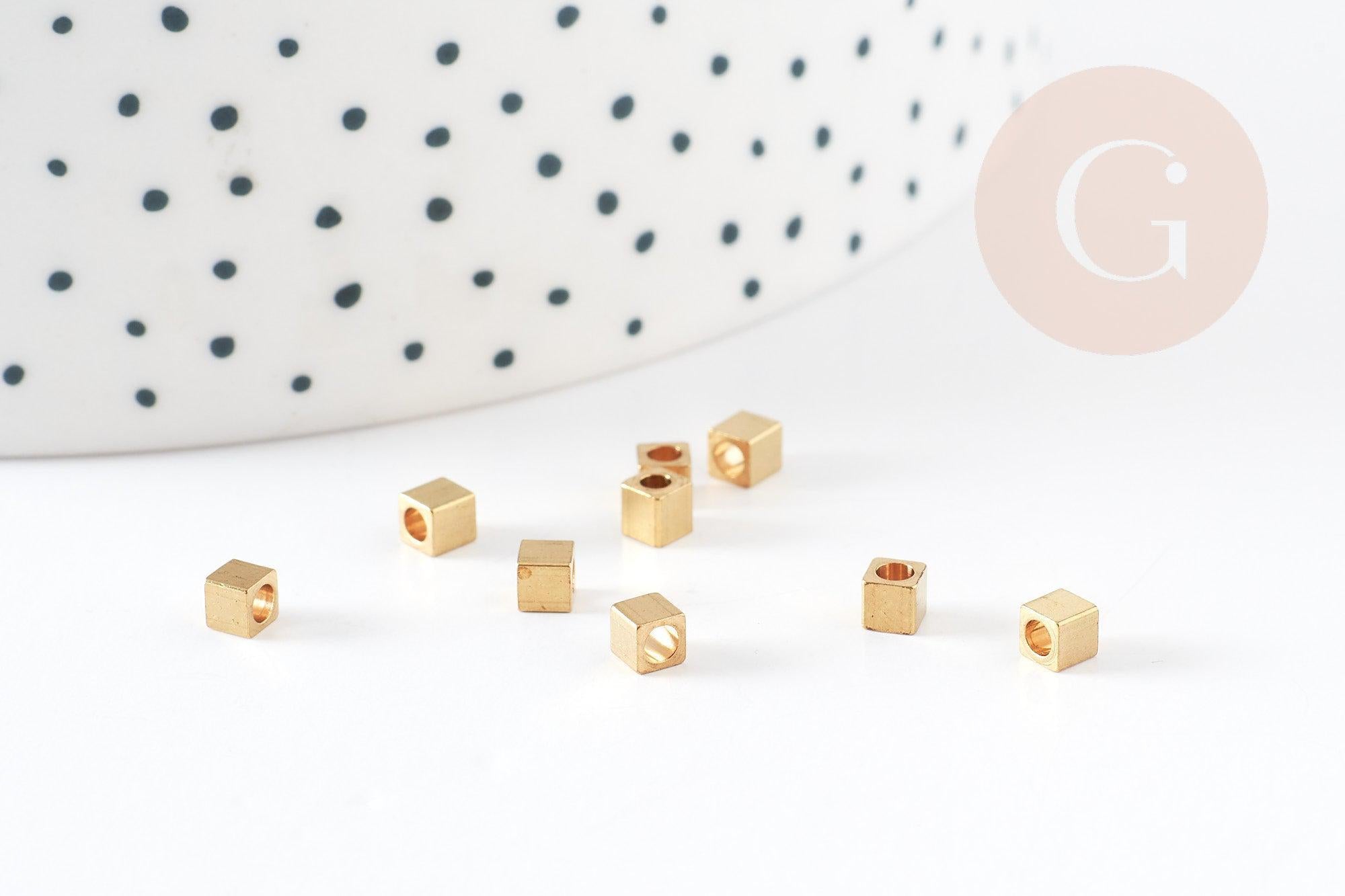 Perlas espaciadoras Perla de latón en bruto cuadrada, perlas de latón, perlas doradas, creación de joyas, latón en bruto, lote de 100, 3 mm