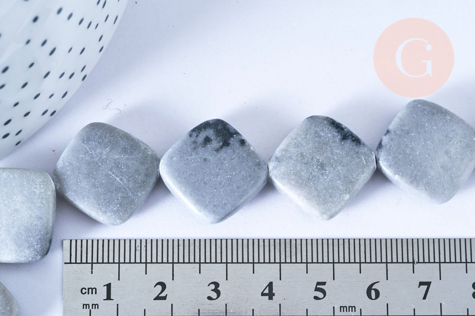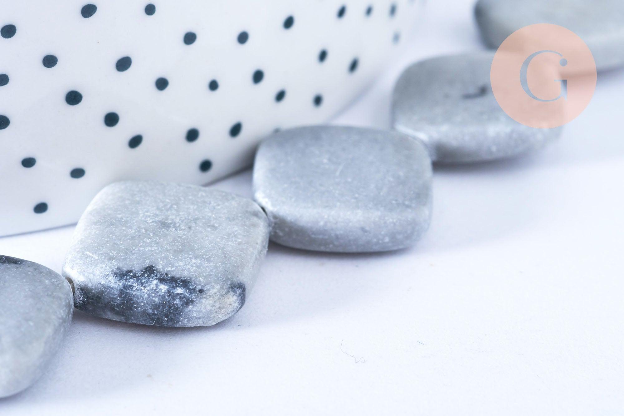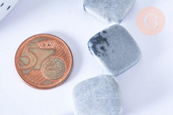 Perles jaspe gris losange, des perles en jaspe gris naturelle,18x21mm, x5 perles (G8382)