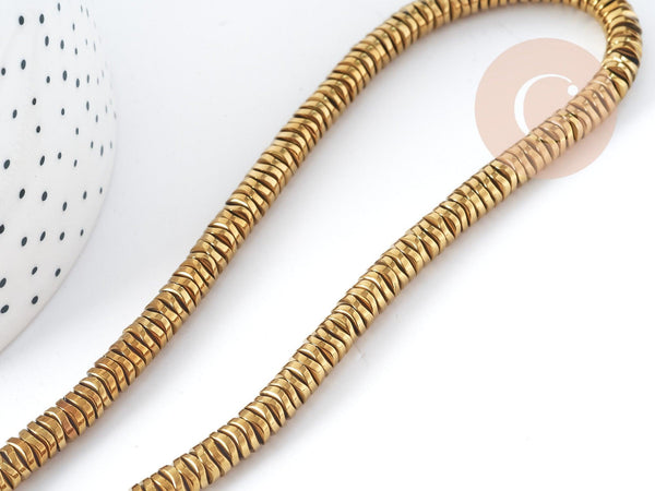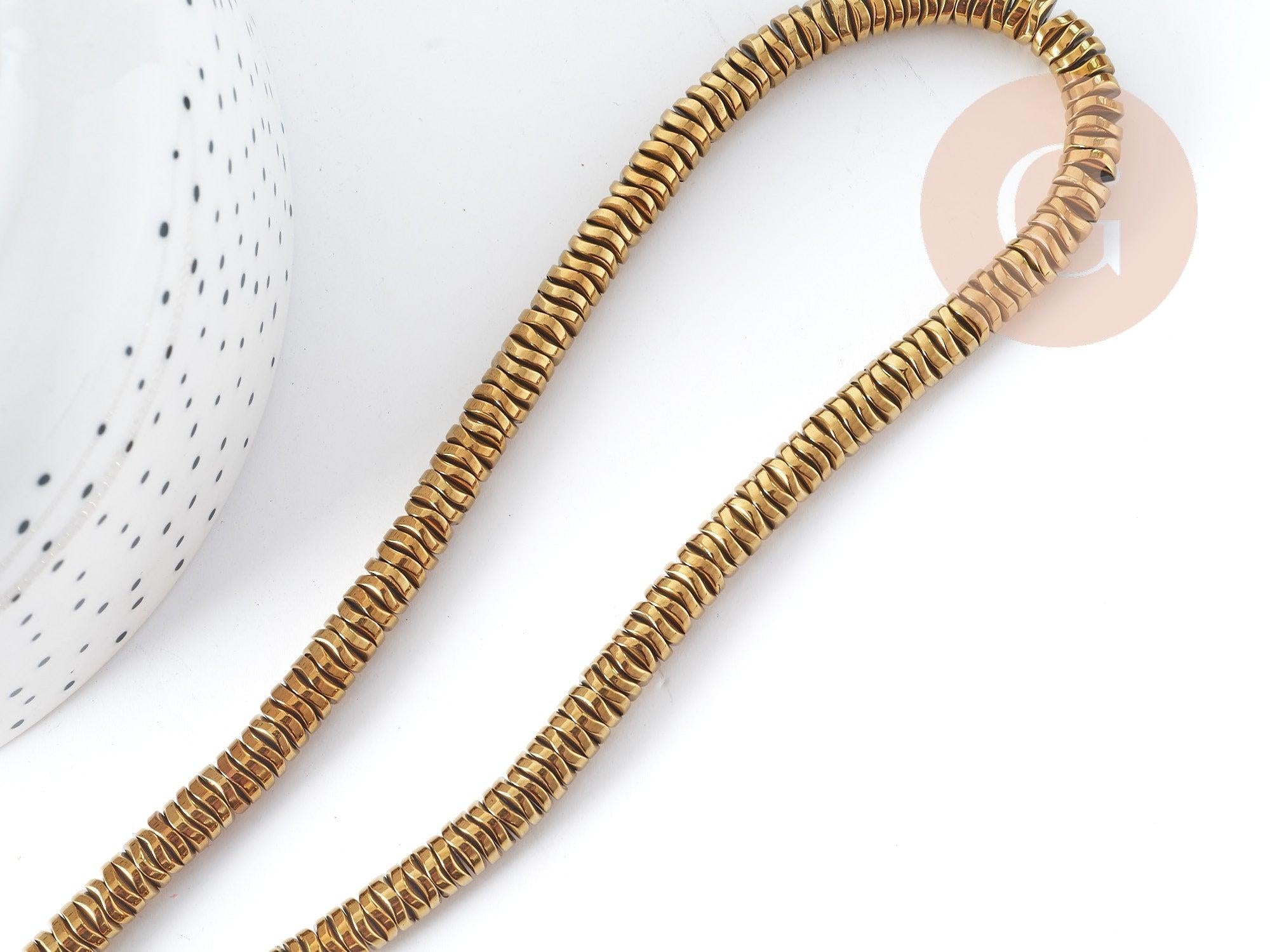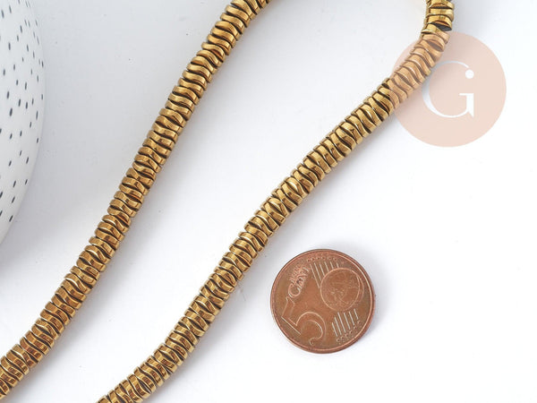 Perle rondelle heishi Ondulée hématite de synthèse dorée 6mm, pierre, fil de 40cm, x1 (G8977)