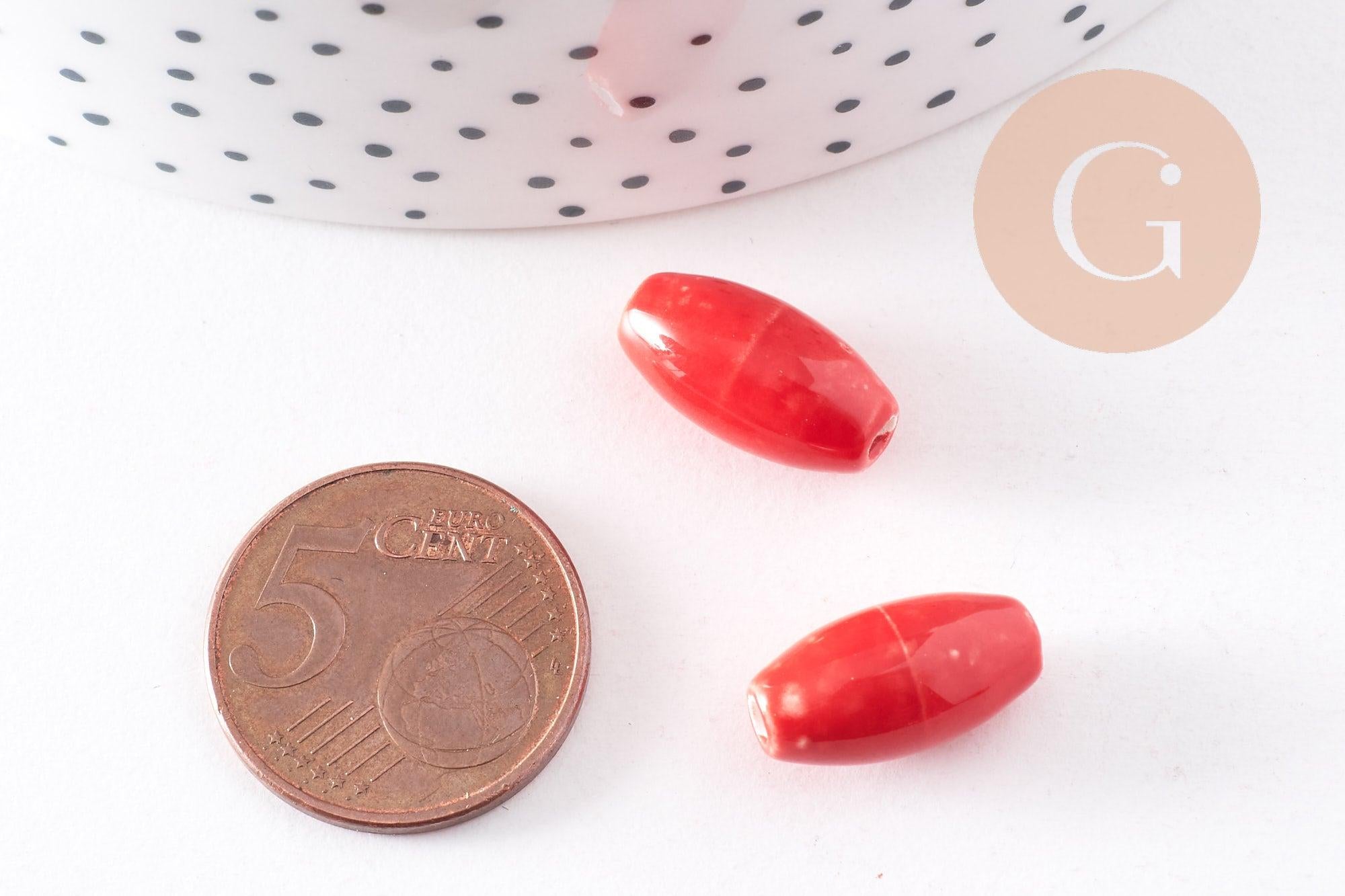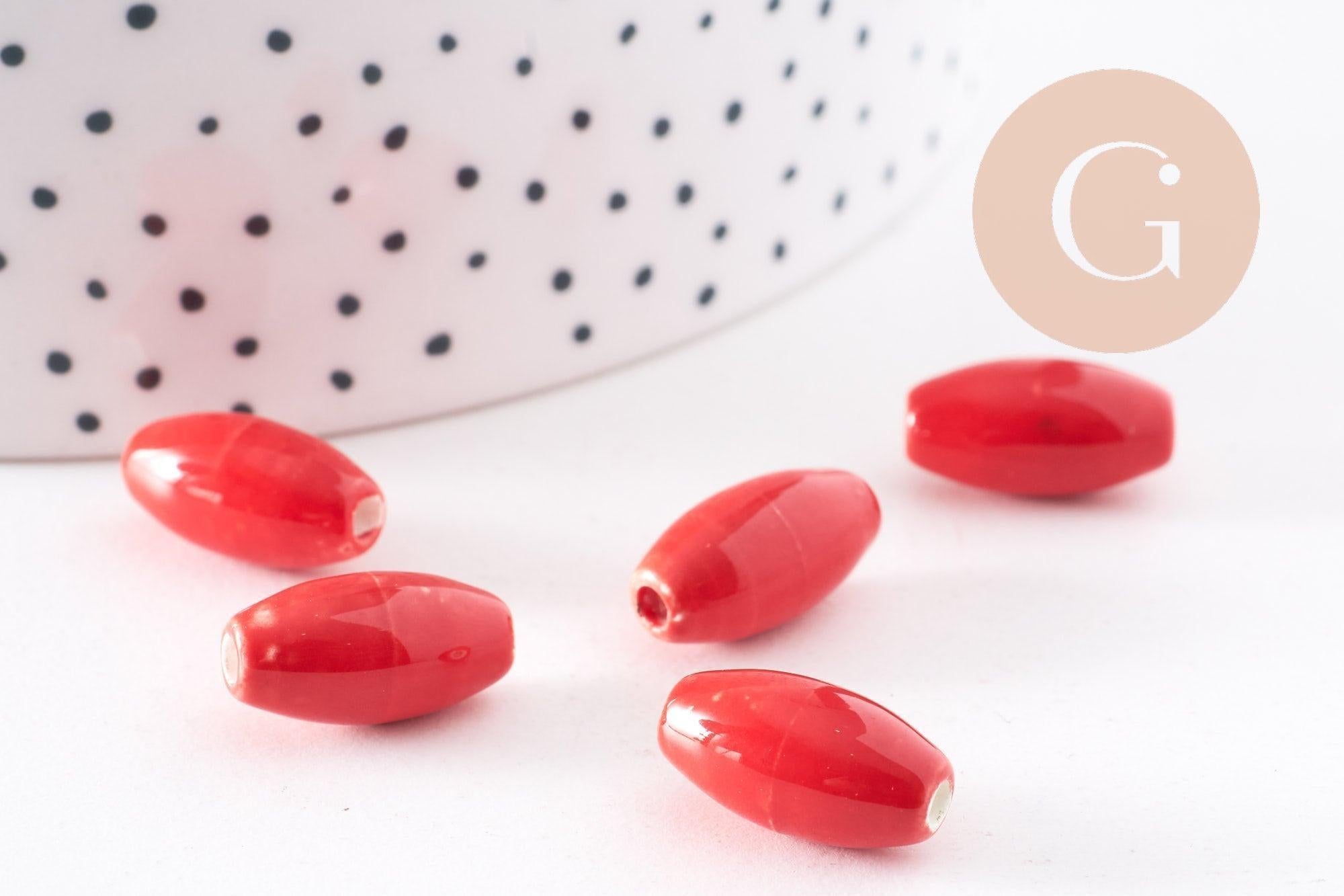Perles ovales porcelaine rouge,perles céramique, porcelaine émaillée, perle ovales, création bijoux, 1.6cm, x5 G5380