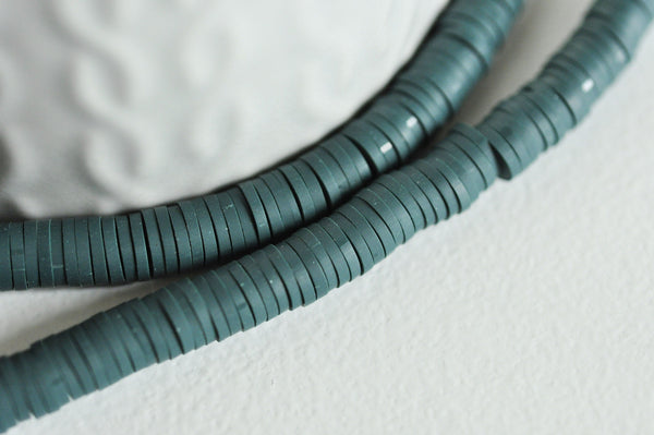 Cuentas heishi de polímero verde oscuro EP de 6 mm, tira de 320 cuentas - G1567