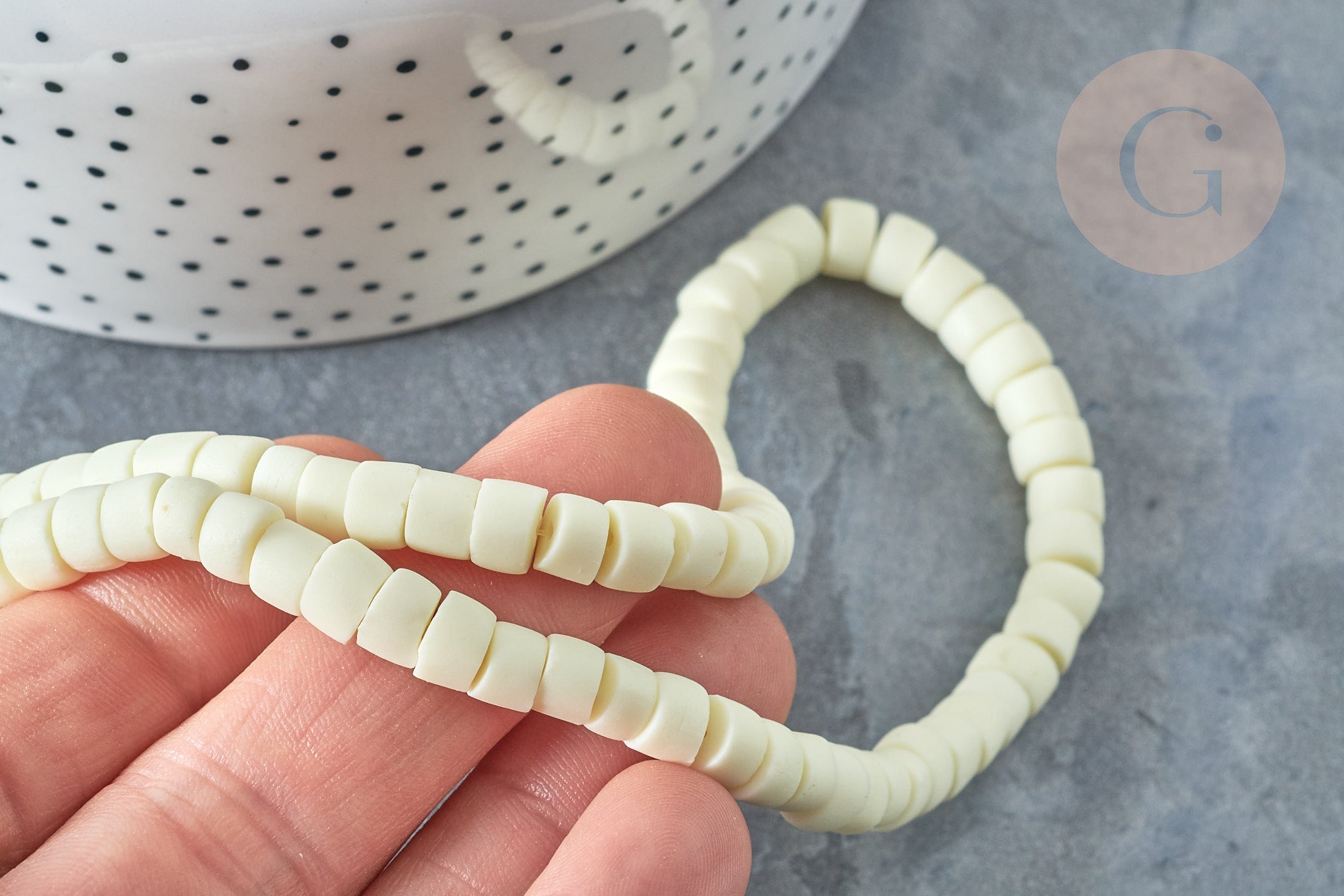 Cuentas de porcelana heishi amarillo claro 6x3~4 mm, joyería de cerámica, hilo 48cm, x1 G7535