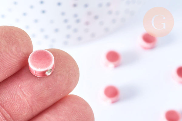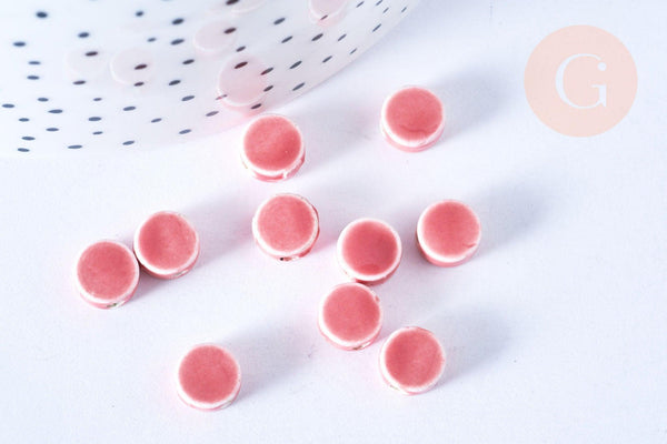 Añade un toque delicado y artesanal a tus creaciones con este conjunto de cuentas de disco de porcelana rosa esmaltada . Hechas a mano, estas cuentas se distinguen por su textura suave, su brillo sutil y sus tonos delicados, perfectas para joyería femenina y elegante.