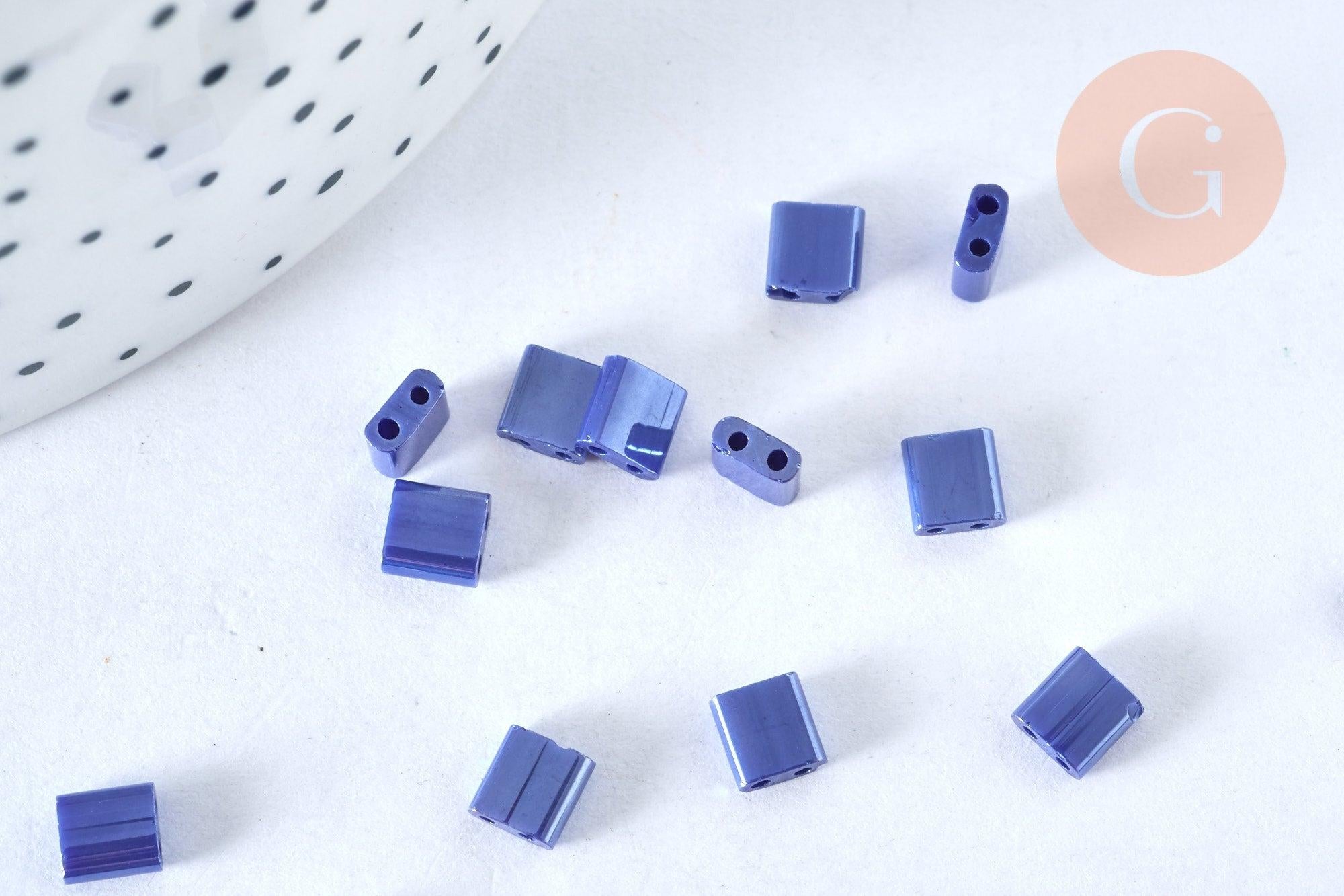 Cuentas de vidrio cuadradas rectangulares de color azul iridiscente, creación de pulseras de cuentas cuadradas, cuentas de tila, 4,5 mm, 2 agujeros, x50 (4,8 gr) (G6814)