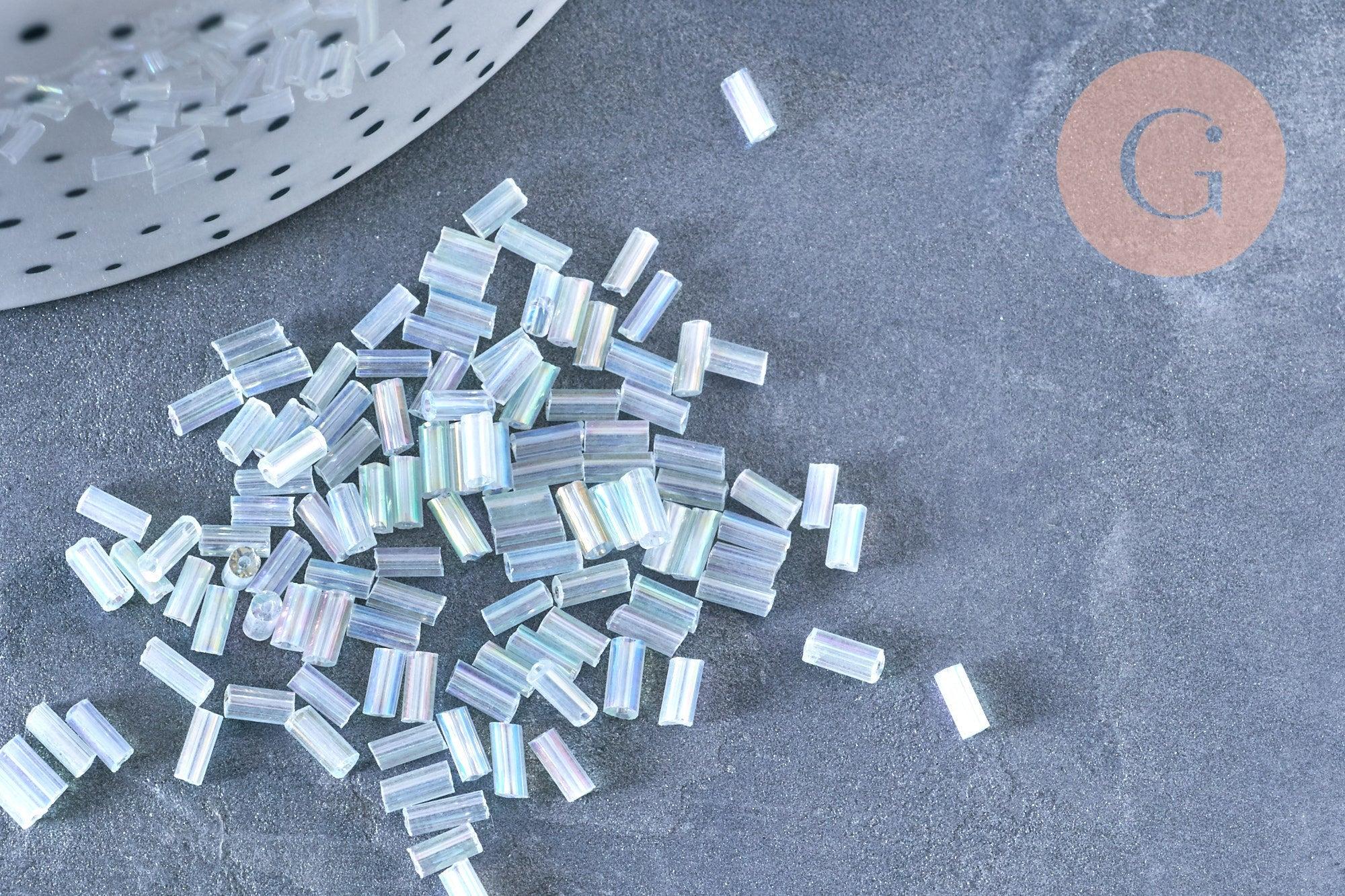 Perles rocaille Tube blanc AB 4,5mm, Fournitures création de bijoux, x 5gr (G7304)