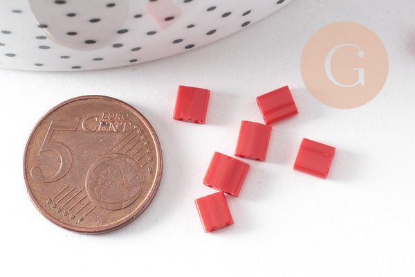 perles rocaille verre rectangle rouge, perle carré création bracelet, perle tila,4.5mm,2 trous, x50 (G5484)