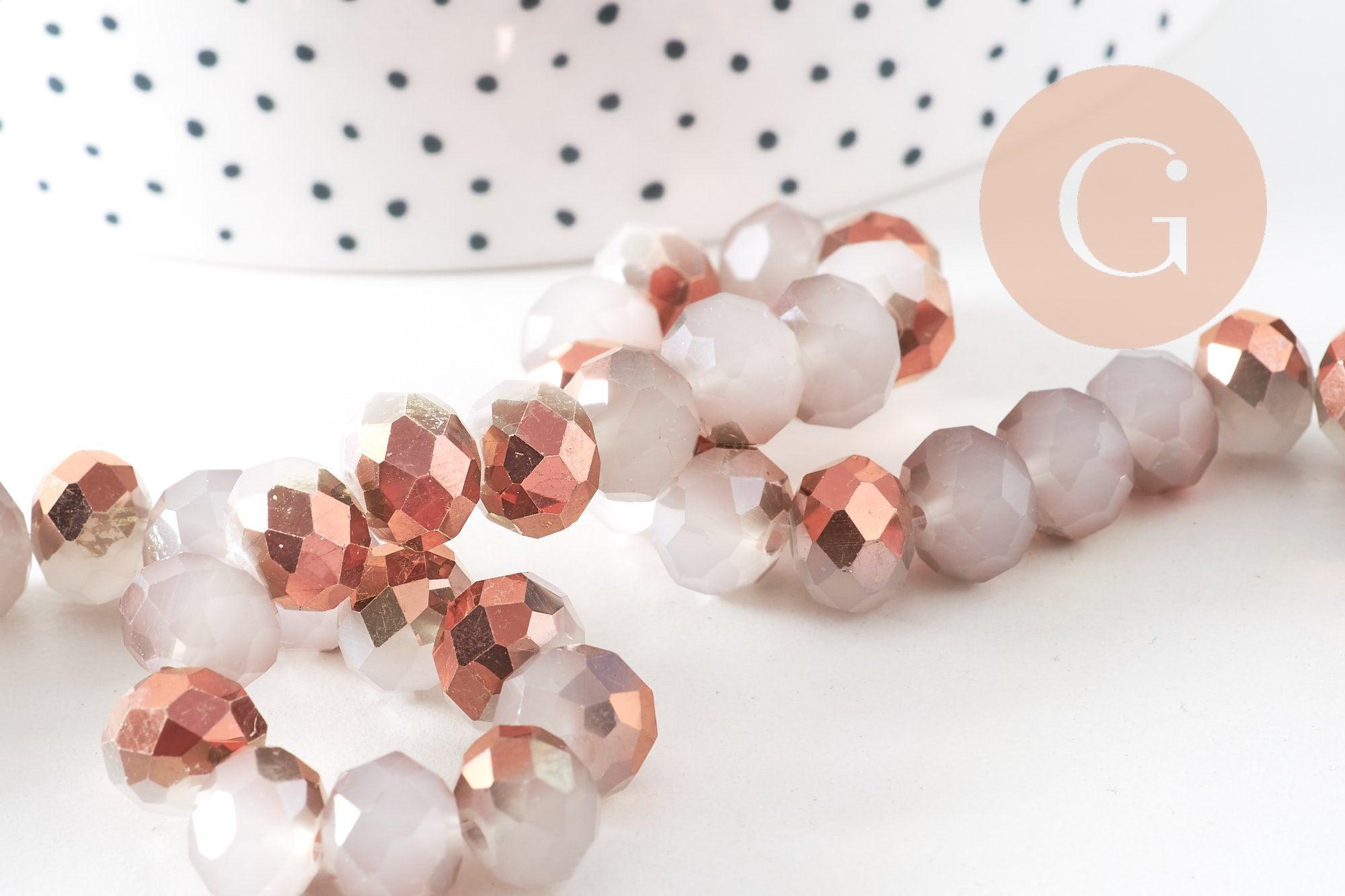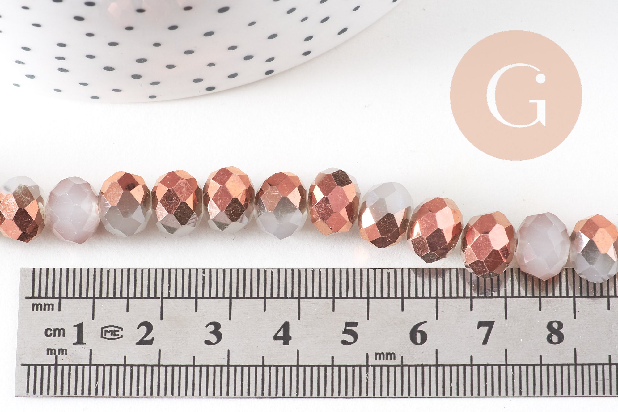 Cuentas redondas de cristal blanco y dorado – 10 x 8 mm, tira de 48 cm x1 (G10753)