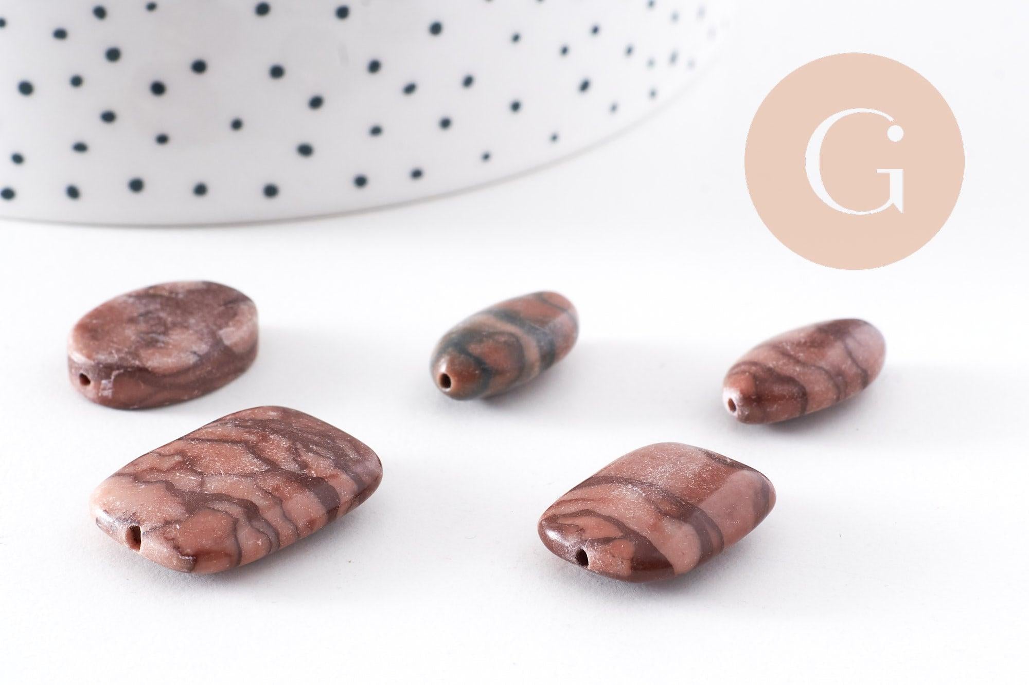 Estas cuentas de jaspe sésamo cebra marrón natural aportarán un toque auténtico y mineral a tus creaciones de joyería. Cada alambre de 38 cm está disponible en varias formas: redondo, rectangular y oblongo , ofreciendo así multitud de posibilidades para tus creaciones.