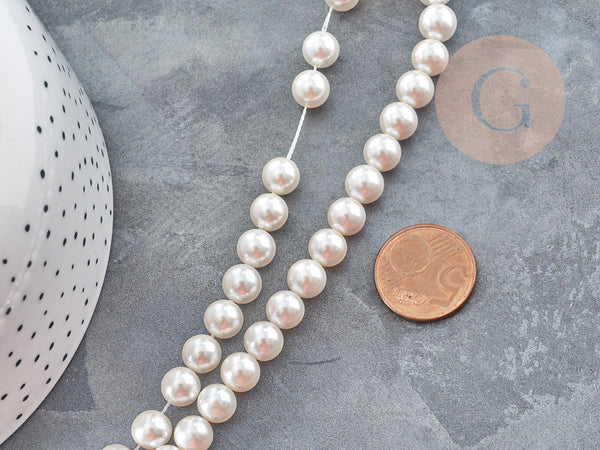 Perles rondes coquillage naturel blanche nacrées 8mm, x1 fil de 40cm (G9058)
