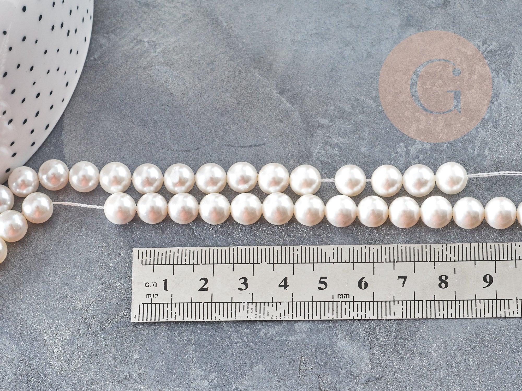 Cuentas de concha natural de color blanco perlado, redondas, 8 mm, x1 tira de 40 cm (G9058)