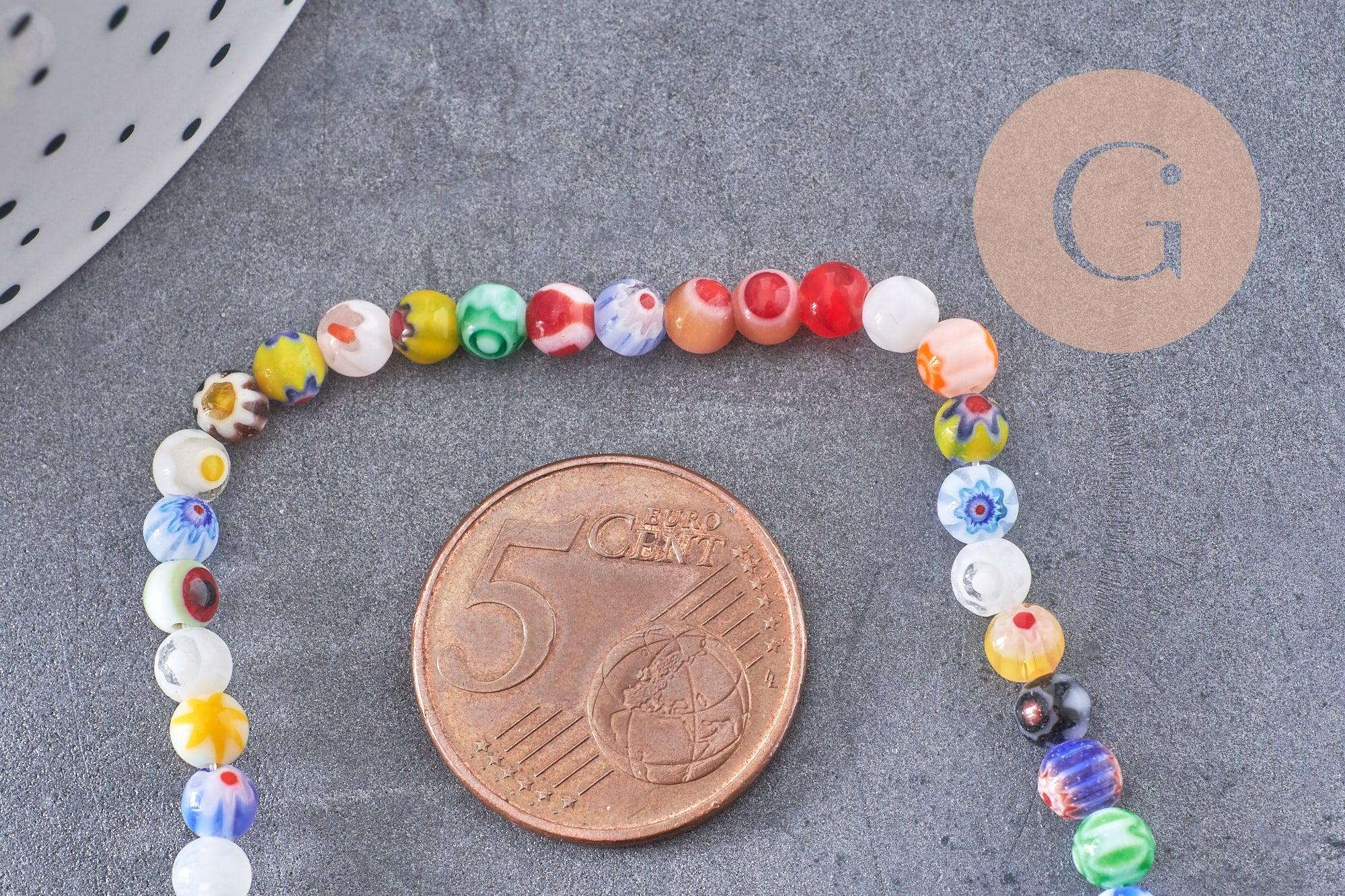 Perles rondes verre millefiori artisanal 4mm, x1 fil de 38cm (G5874)