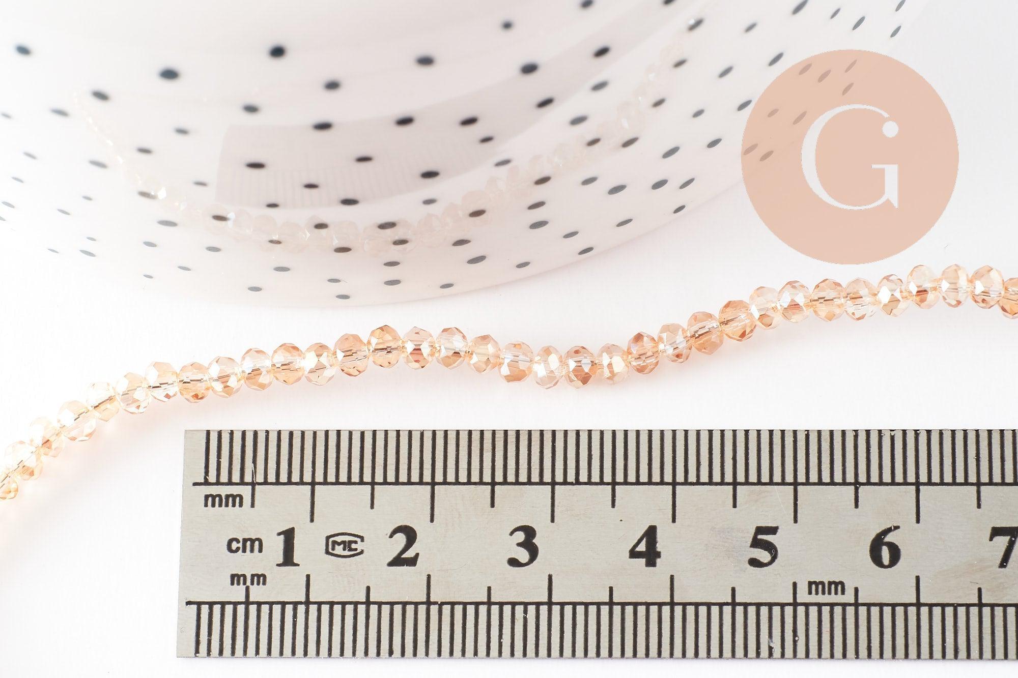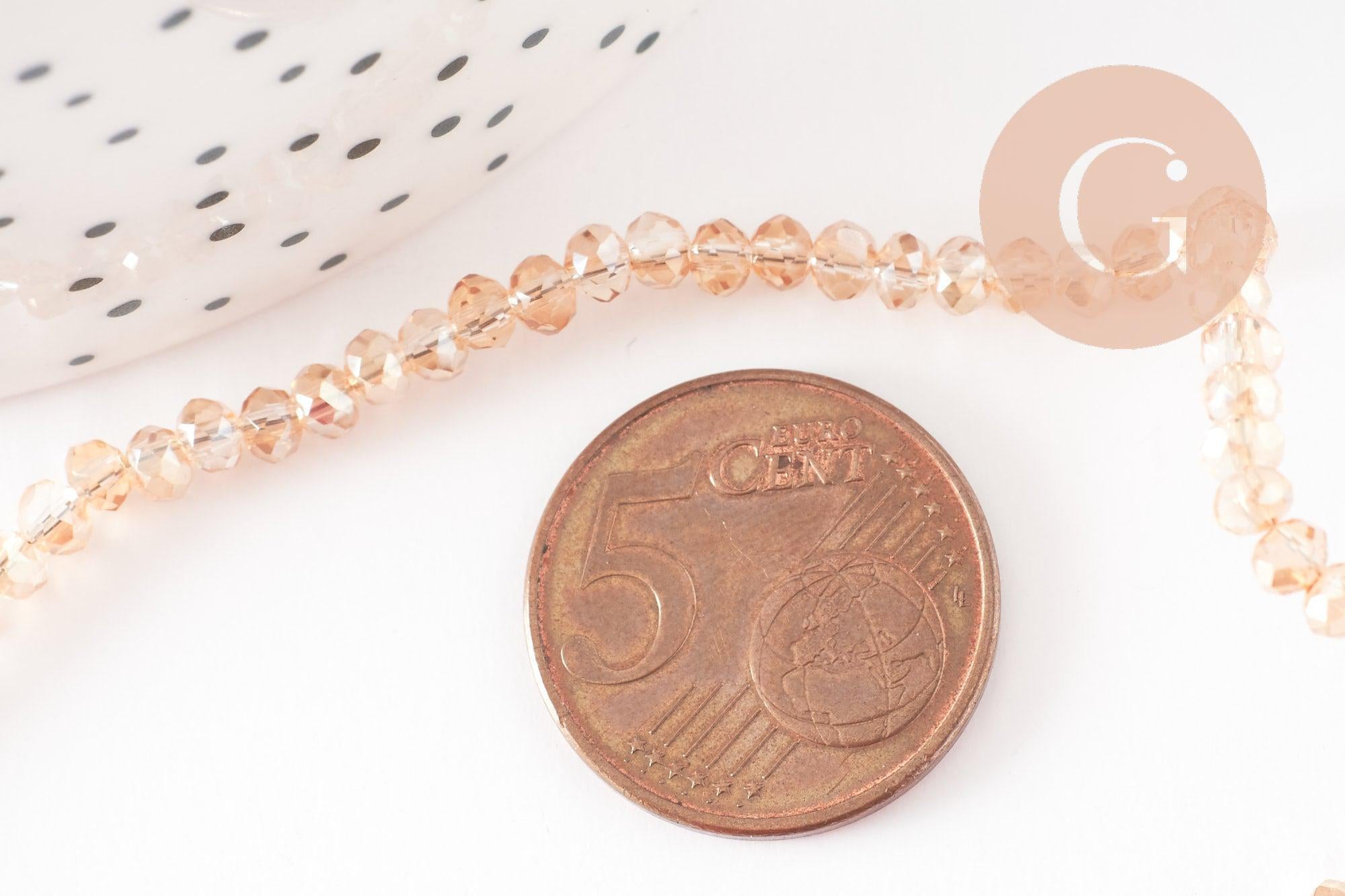 Cuentas de cristal naranja iridiscente transparente con forma de peonza, 3,5 x 2,5 mm, tira de 25 cm, x1 (G8595)