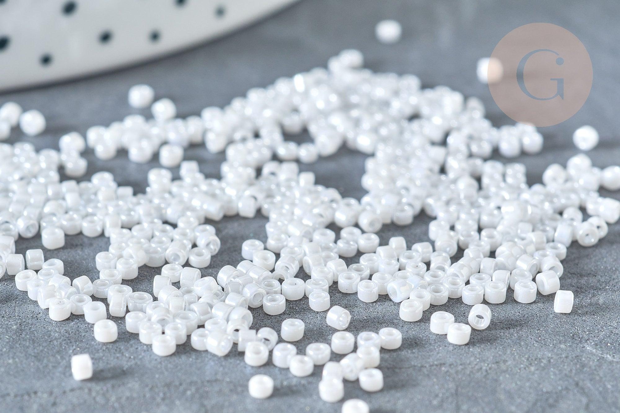 Perles tube blanc opaque façon Delica miyuki, x1 Sachet 8g (G8136)