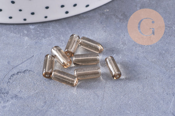 Cuentas de tubo de vidrio beige ahumado, cuentas de vidrio, cuentas de creación de joyas, cuentas de tubo, cuentas beige, 10 mm, hebra de 30 cuentas-G1882
