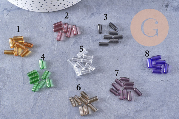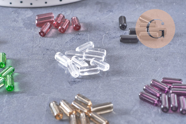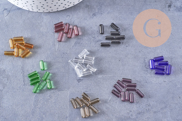 Dale un toque gráfico y colorido a tus creaciones DIY con este juego de cuentas tubulares de vidrio en una variedad de elegantes colores . Su forma tubular y su delicadeza las hacen ideales para crear joyería moderna y ligera.