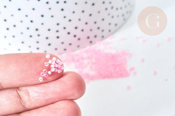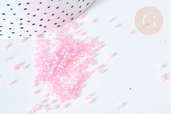 Perles tube verre rose transparent façon Delica miyuki, x1 sachet de 8g (G7768)