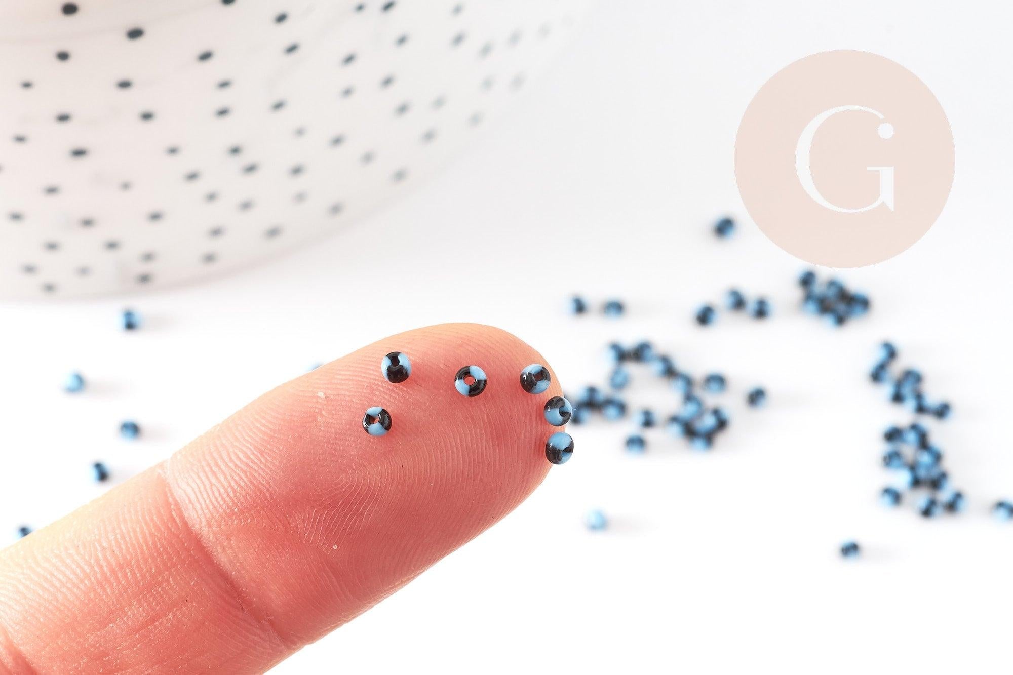 Pequeña cuenta de semilla de rayas azules y negras de 1,5 x 2 mm, cuenta de semilla multicolor, cuenta multicolor, cuenta africana, x10 gr (G3073)