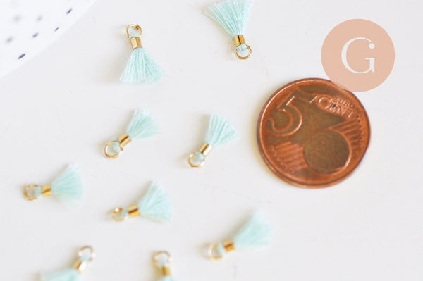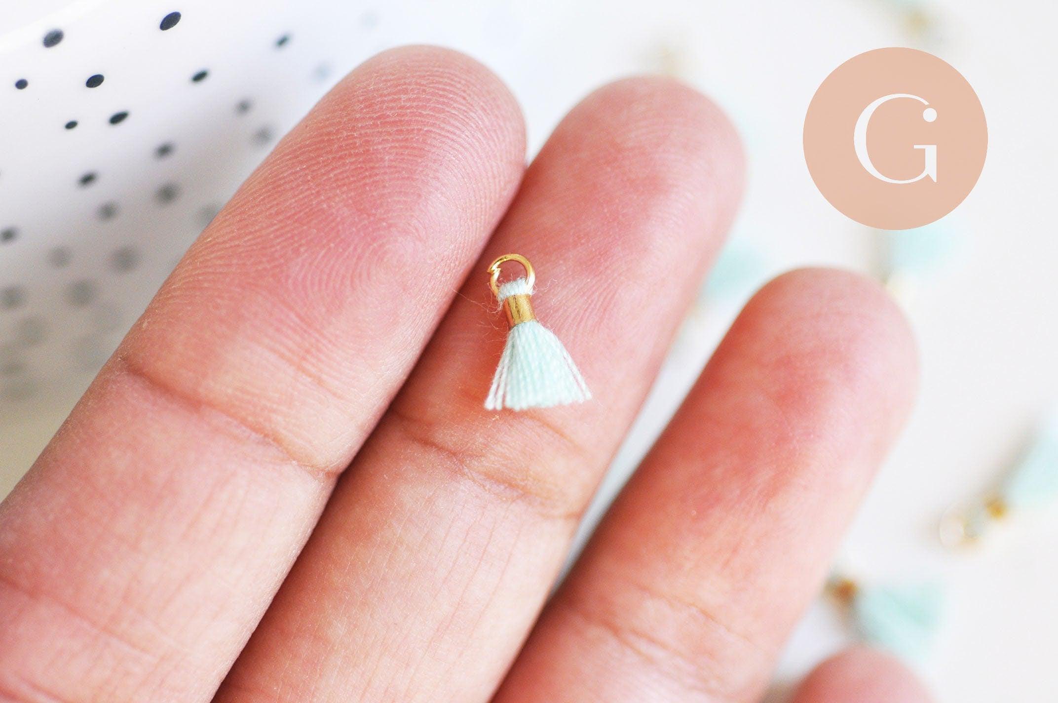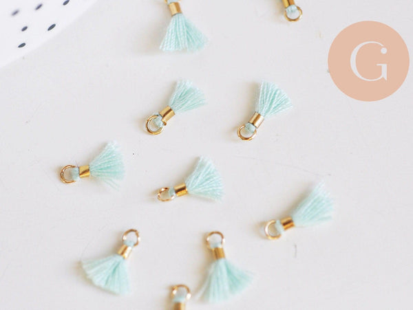 Dale un toque bohemio y colorido a todas tus creaciones DIY con este set de 10 mini pompones azul turquesa claro , hechos con suaves hilos de poliéster y una punta de latón bañada en oro . Perfectos para complementar joyas, objetos textiles o elementos decorativos, estos pompones son ligeros, elegantes y fáciles de integrar en todos tus proyectos creativos.
