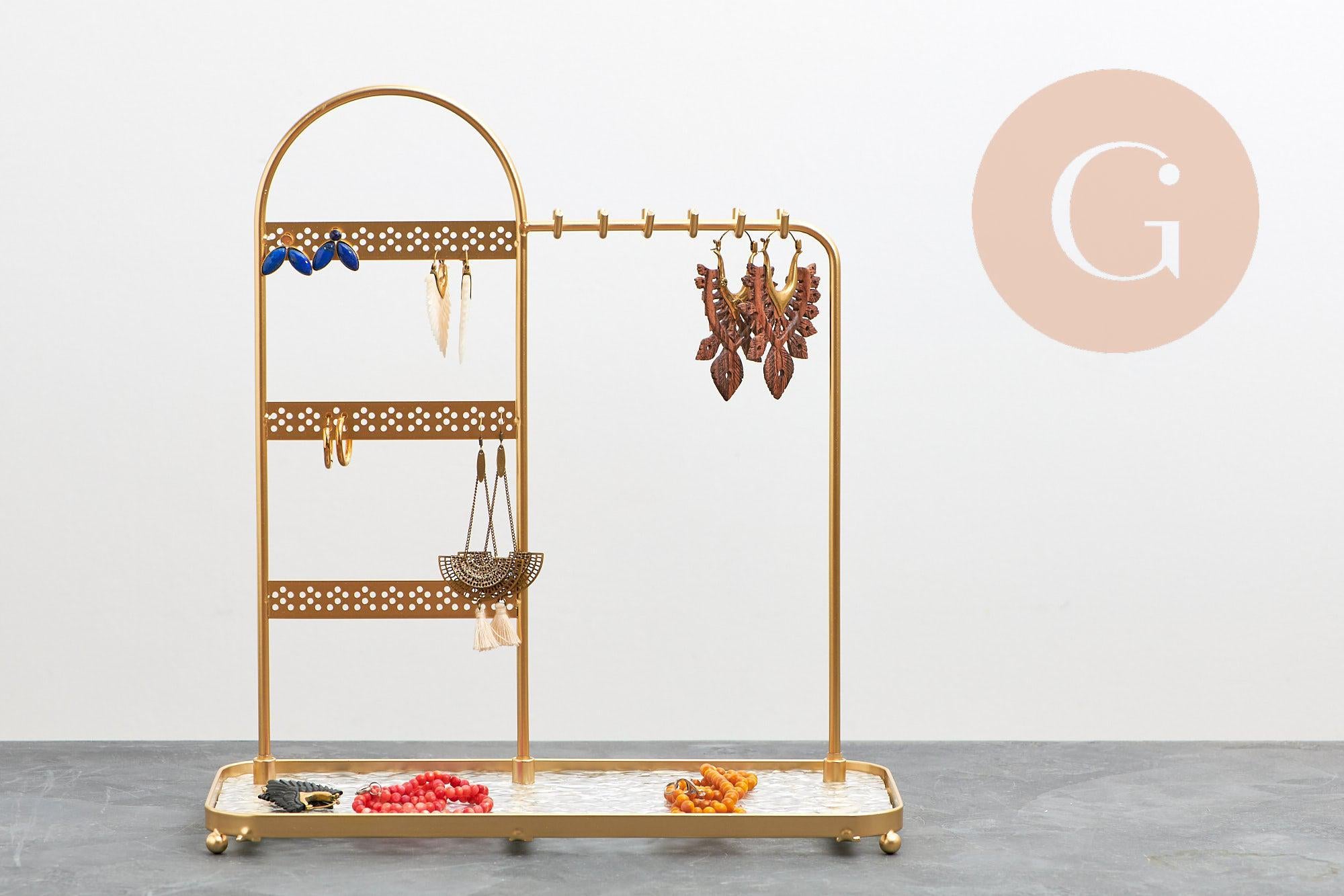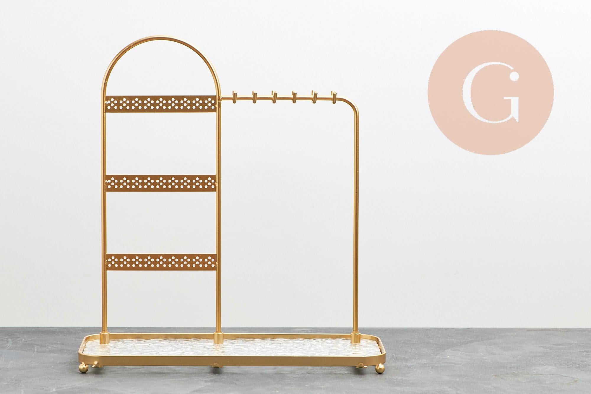 Expositor de joyas, pendientes y collares, bandeja de acrílico, hierro dorado, 30 cm, x1 (G10247)
