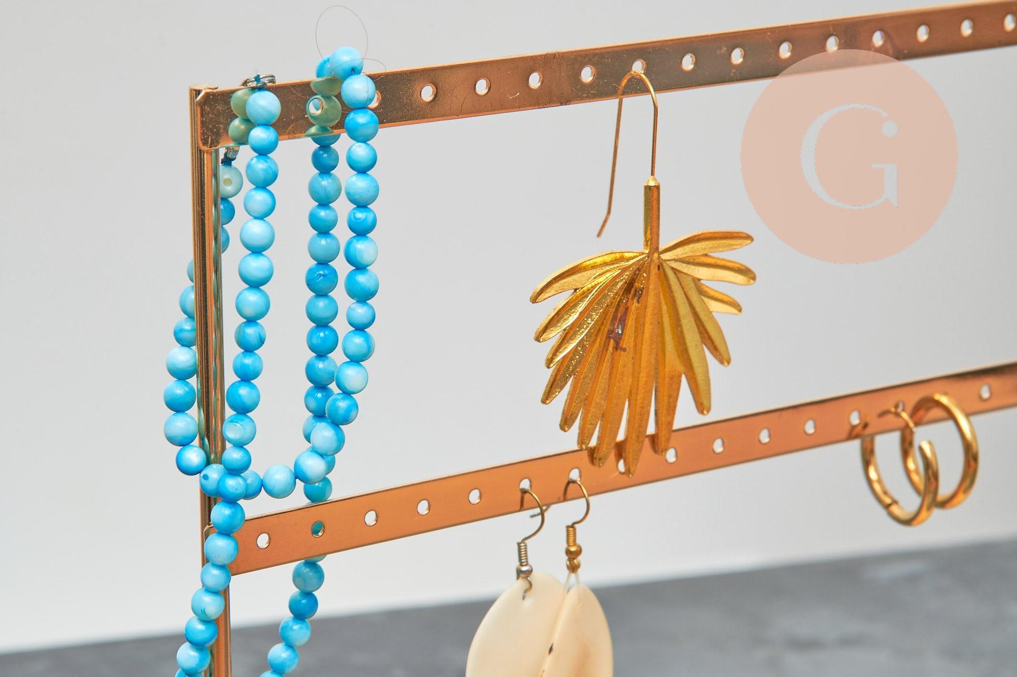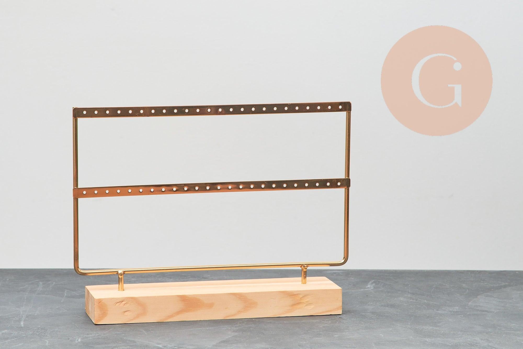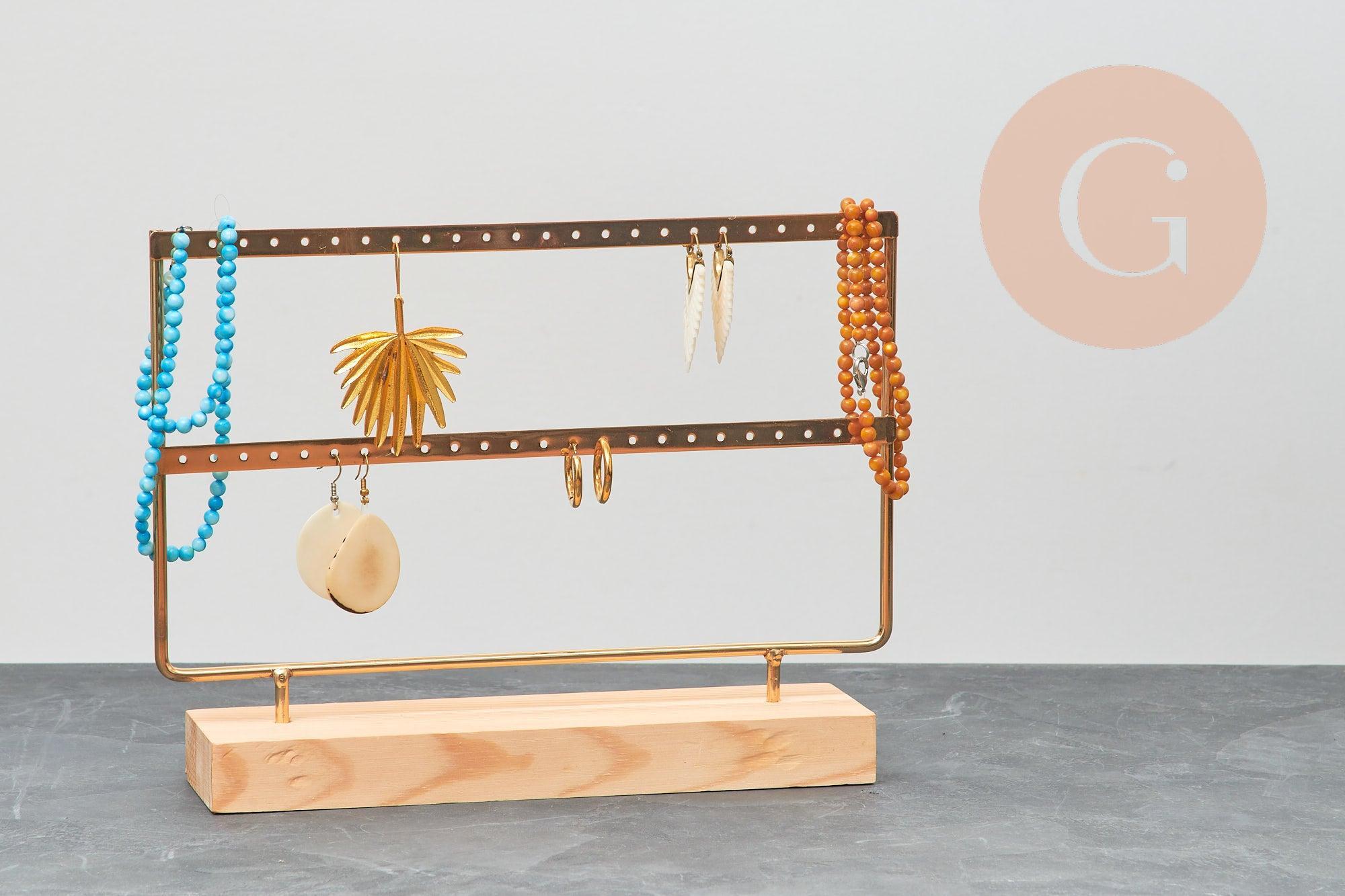 Has creado muchas joyas este año y ya no sabes dónde guardar tus creaciones de fantasía DIY ; Este expositor de latón dorado y madera resaltará tus joyas hechas por ti mismo .