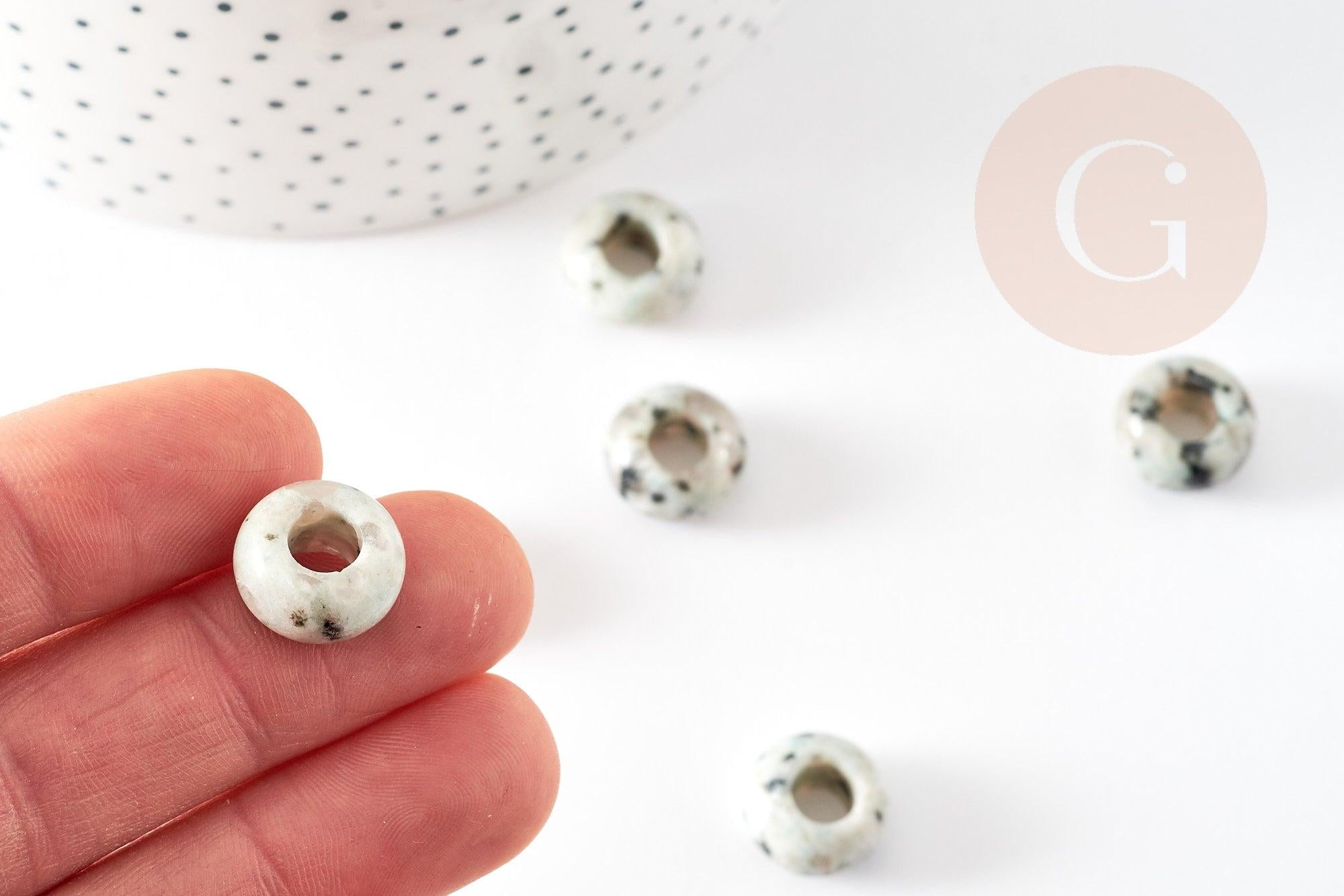 Perle Rondelle donut Jaspe sésame blanc naturelle 14mm, rondelle pierre pour création bijoux x2 (G9213)