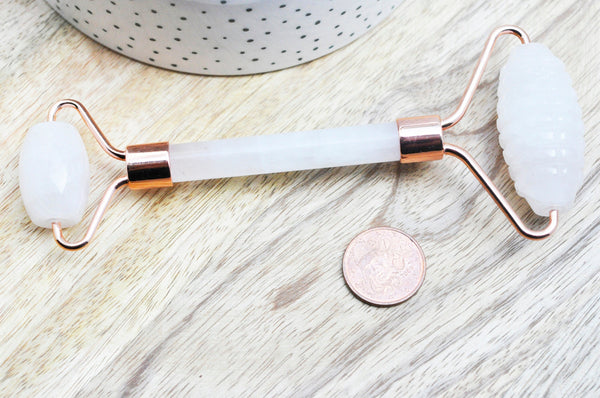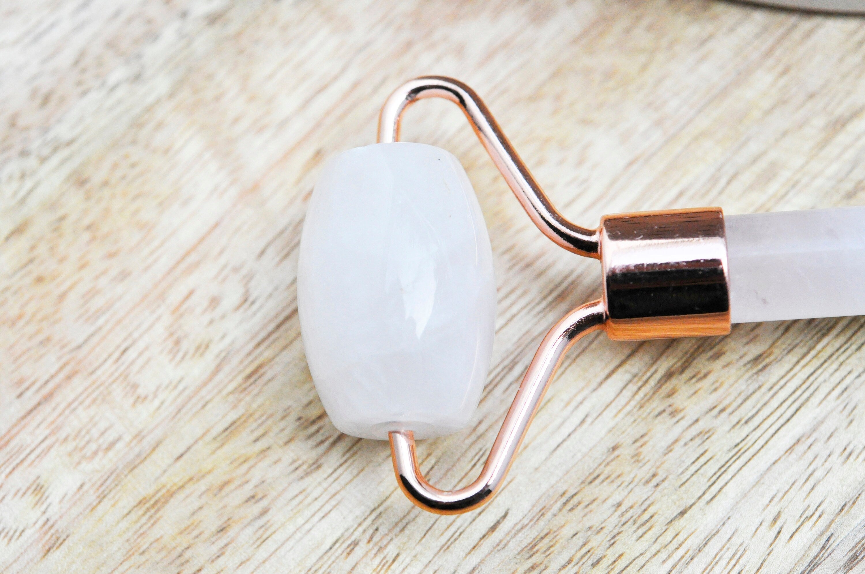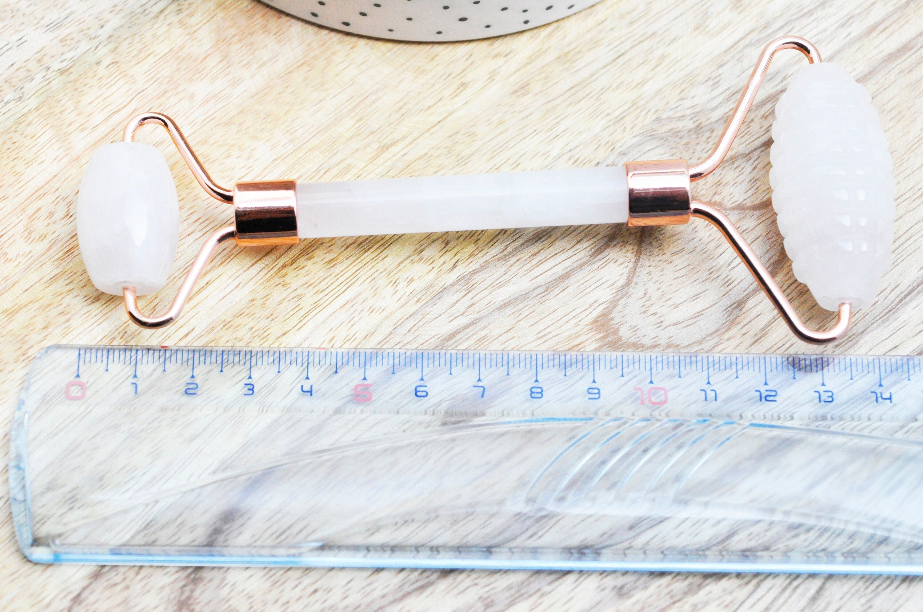 Un rodillo de masaje de cuarzo rosa natural que estimulará los tejidos, promoverá la circulación sanguínea y el drenaje linfático.