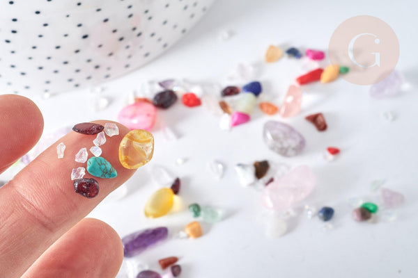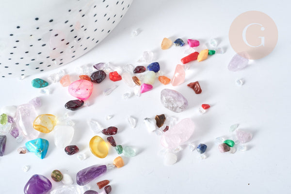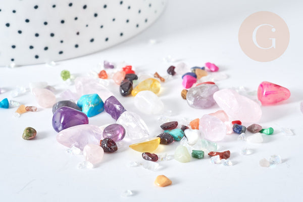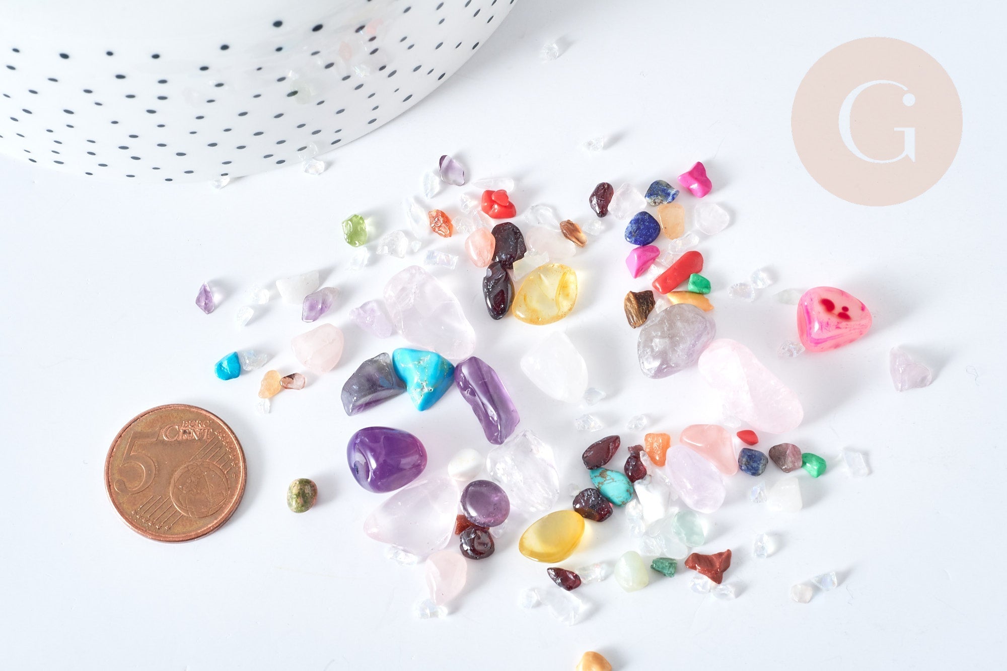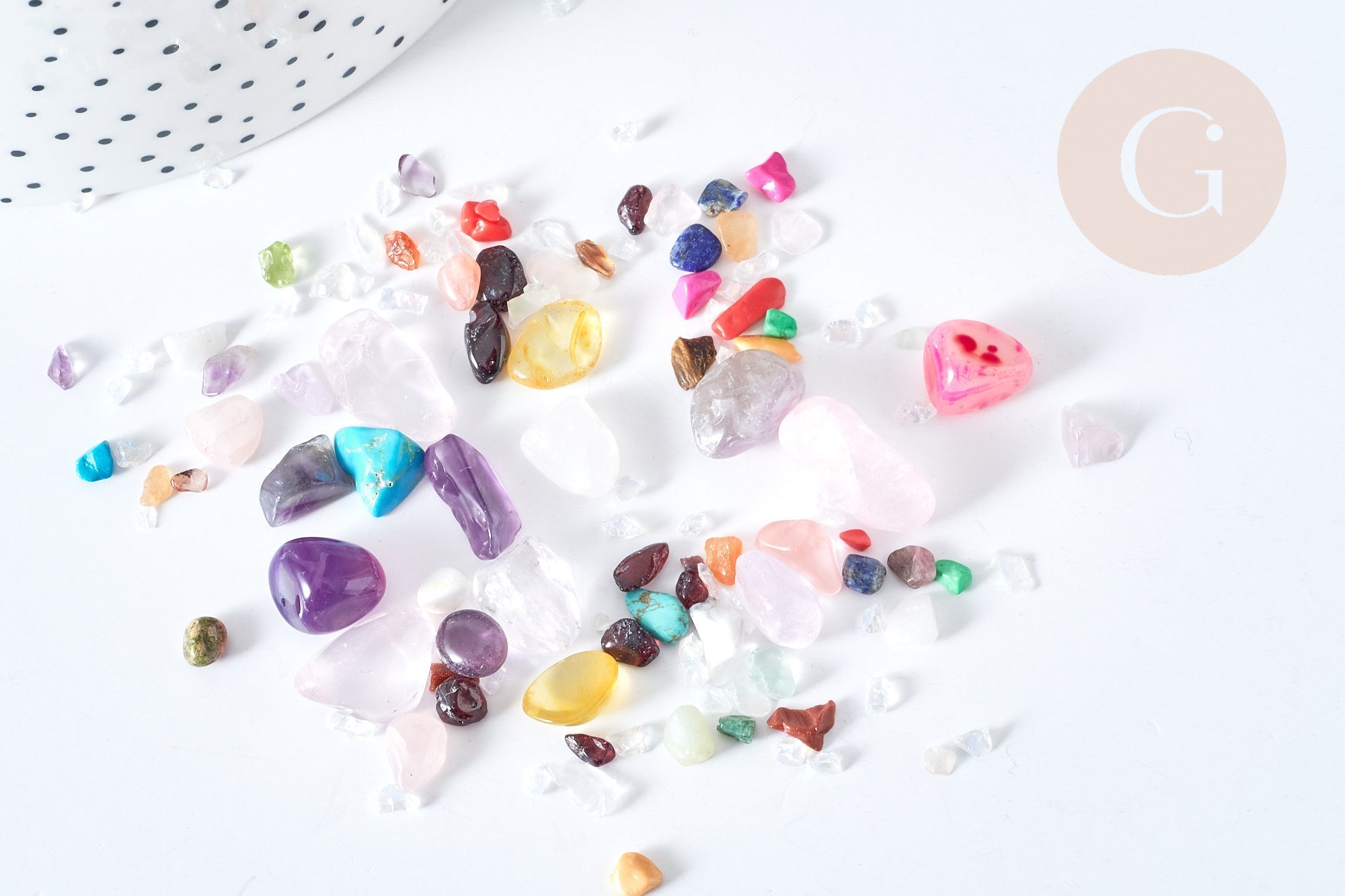 Añade un toque de color e individualidad a tus diseños de joyería con estas cuentas de piedras naturales y sintéticas mixtas.