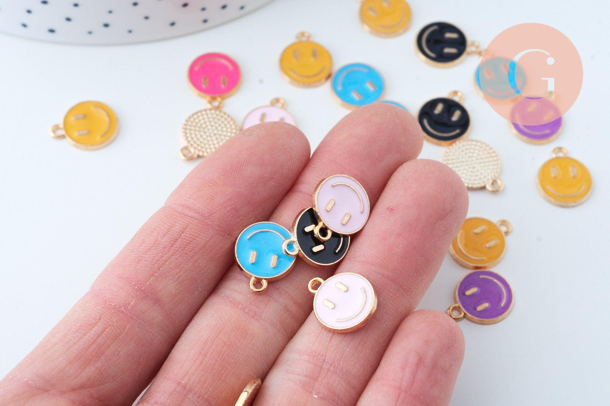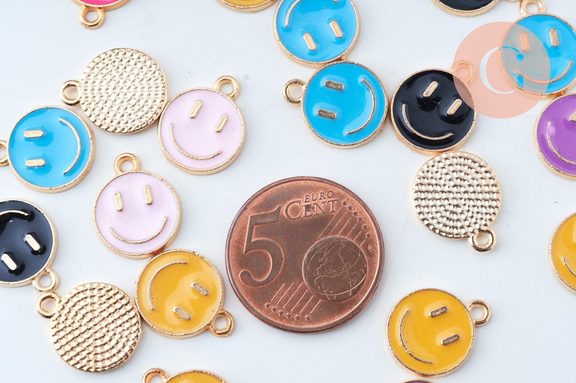 ¡Colgantes smiley dorados en zamac y resina coloreada para tus creaciones de joyería DIY coloridas y alegres!