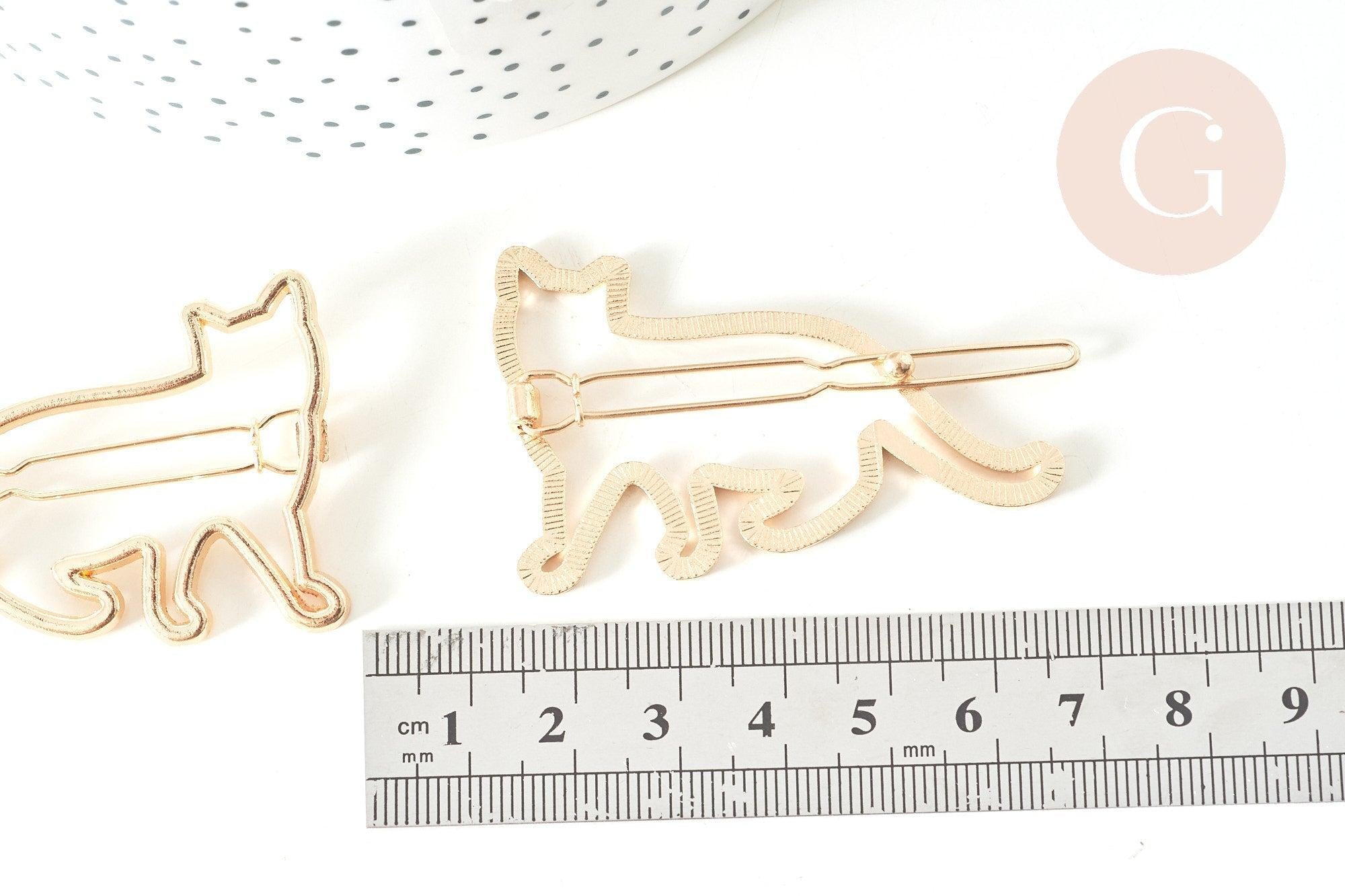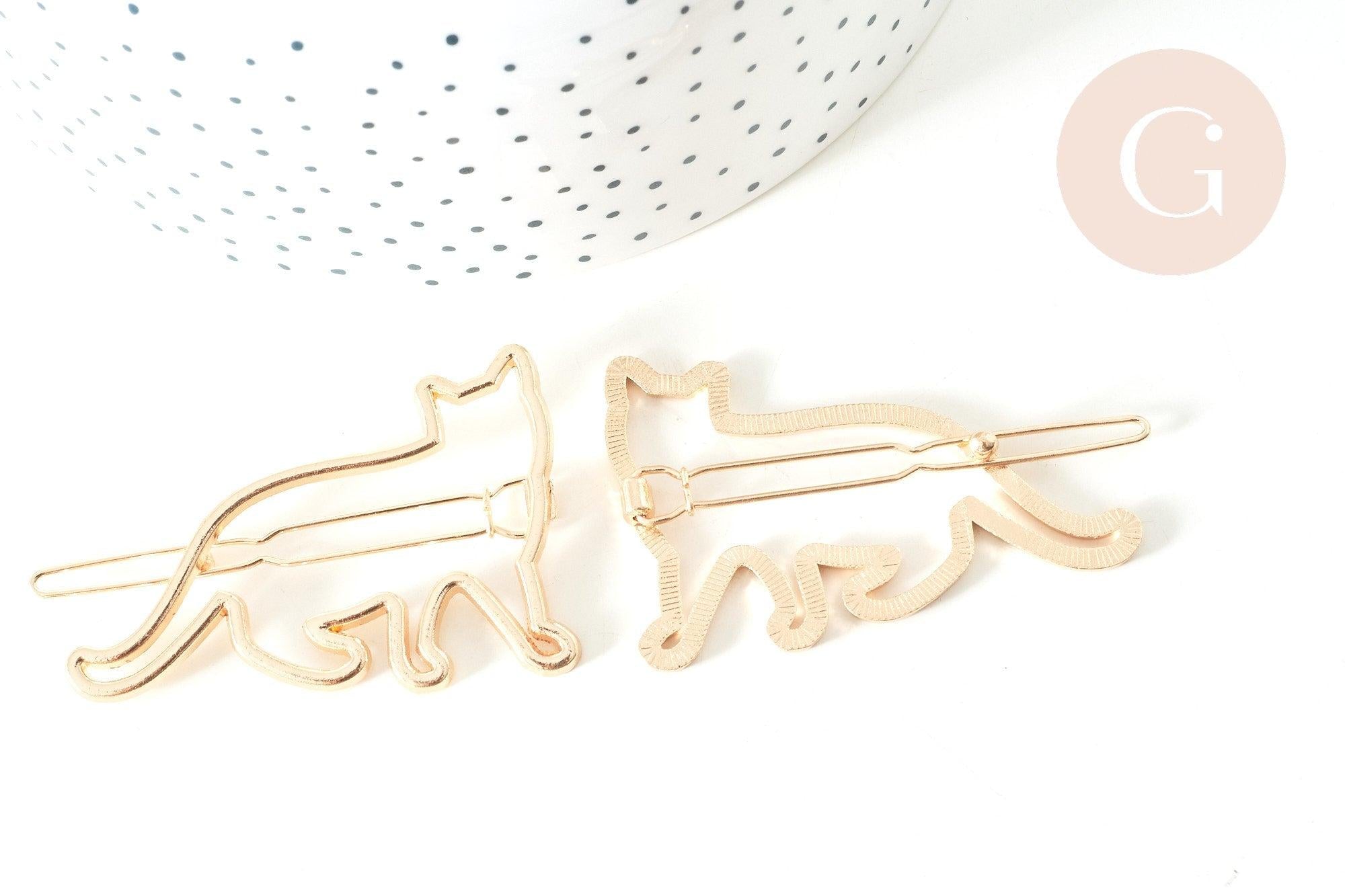 Un pasador con clip de gato de metal dorado, que se adoptará de inmediato para hacer pasadores para el cabello personalizados ;