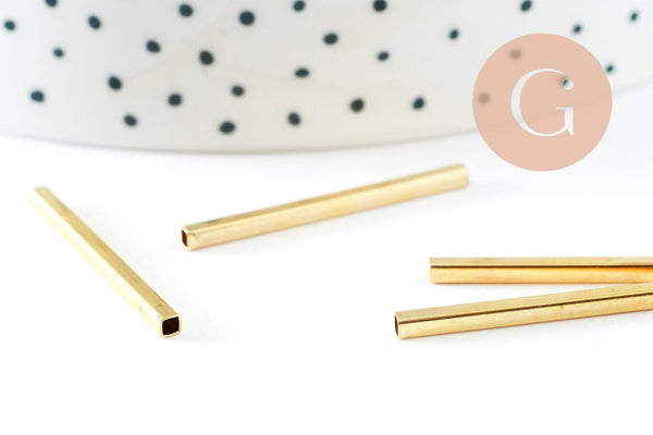 Tubos cuadrados de latón crudo, suministros creativos, tubo dorado, creación de joyas, tubo de latón, tubo de joyería, hallazgos dorados, lote de 50, 40 mm