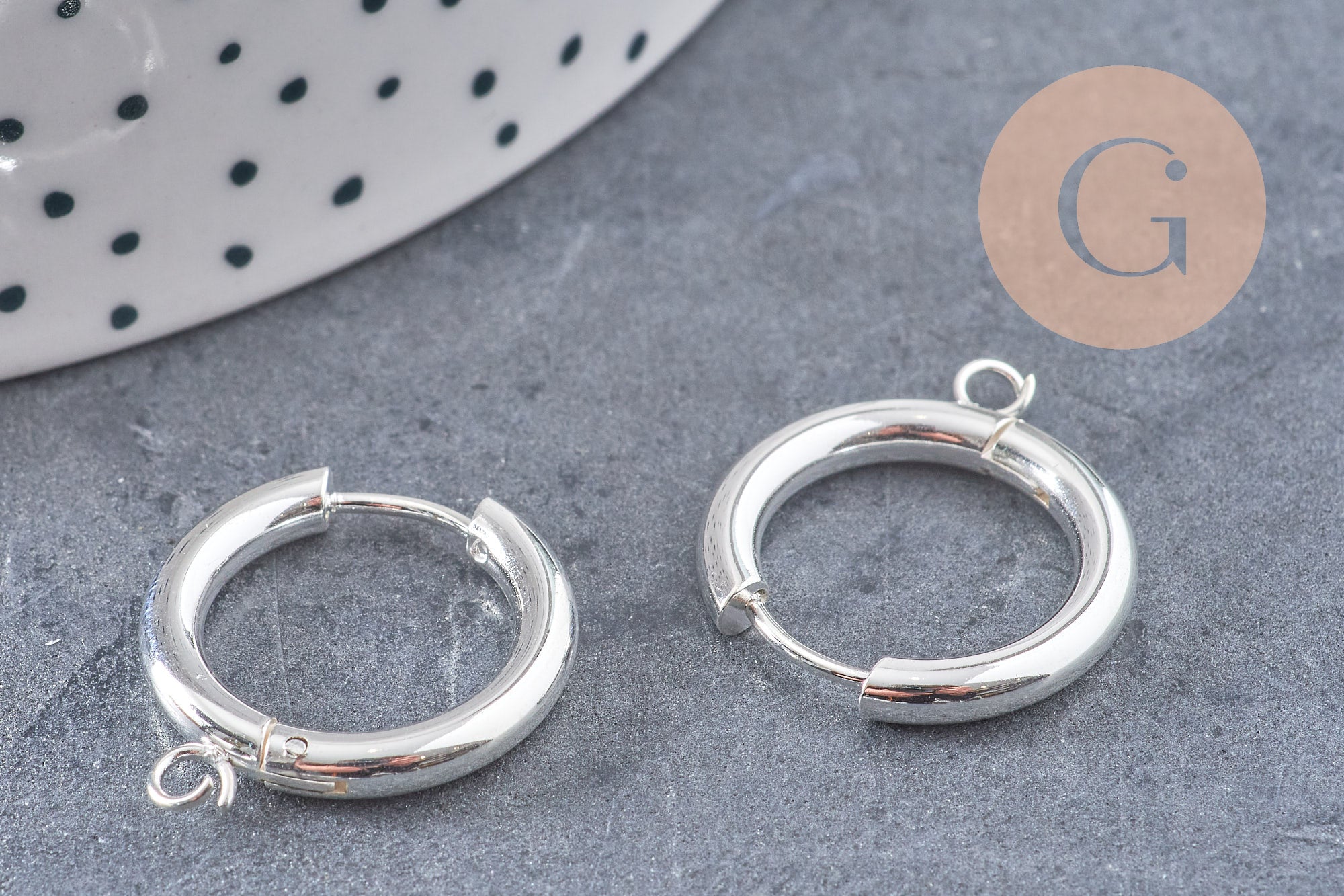 Ces anneaux créoles en acier inoxydable argenté sont parfaits pour créer facilement des boucles d’oreilles personnalisées. Leur finition brillante et leur anneau horizontal intégré permettent d’ajouter en quelques secondes un pendentif, une breloque ou une pierre. Le mélange d’acier 201 et d’un pin 316 chirurgical garantit un bijou résistant, durable et confortable même pour les oreilles sensibles.