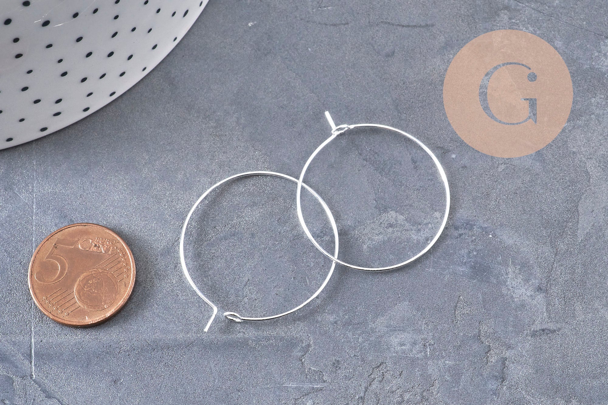 Créoles argentées en acier inoxydable 316 de 30 mm, parfaites pour créer des boucles d’oreilles DIY durables et élégantes.